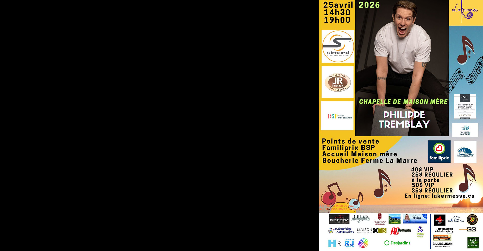 LA KERMESSE- L’auteur-compositeur-interprète malbéen Philippe Tremblay se produira en concert à la chapelle de Maison Mère de Baie-Saint-Paul le 25 avril prochain.
