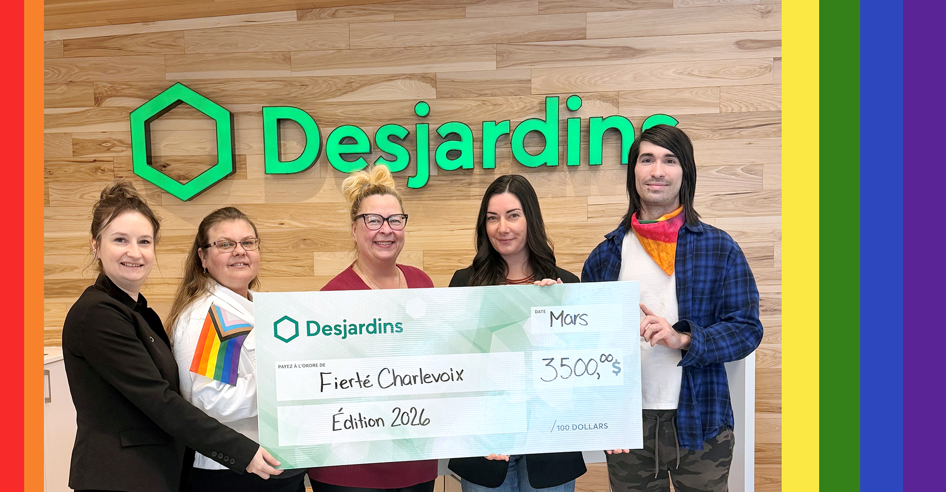 La Caisse Desjardins de Charlevoix confirme le maintien de son partenariat avec le comité organisateur de Fierté Charlevoix.