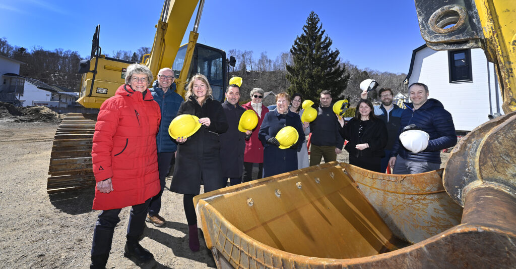 24 logements abordables pour favoriser l’établissement de nouvelles familles à La Malbaie. Kariane Bourassa, députée de Charlevoix–Côte-de-Beaupré et les partenaires du projet. Photo: Jean-François Desgagnés/MPC