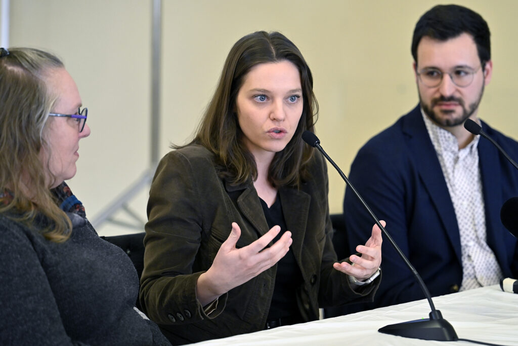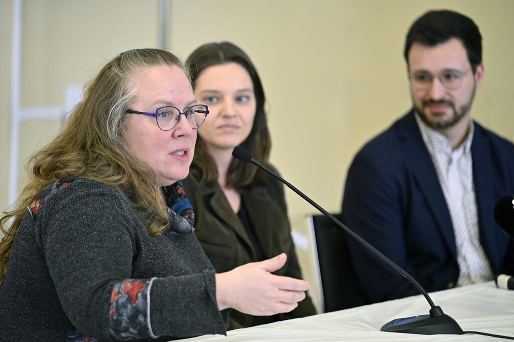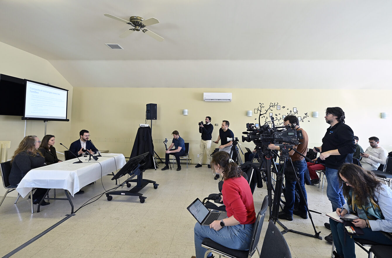 Le Dr Philippe Robert, directeur de santé publique du CIUSSS de la Capitale-Nationale. Dre Isabelle Goupil-Sormany, médecin-conseil et Cheffe de département clinique de santé publique et de Dre Laurence Matteau-Pelletier, médecin spécialiste en santé publique et médecine préventive des Services de santé au travail. Photo : Jean-François Desgagnés/MPC