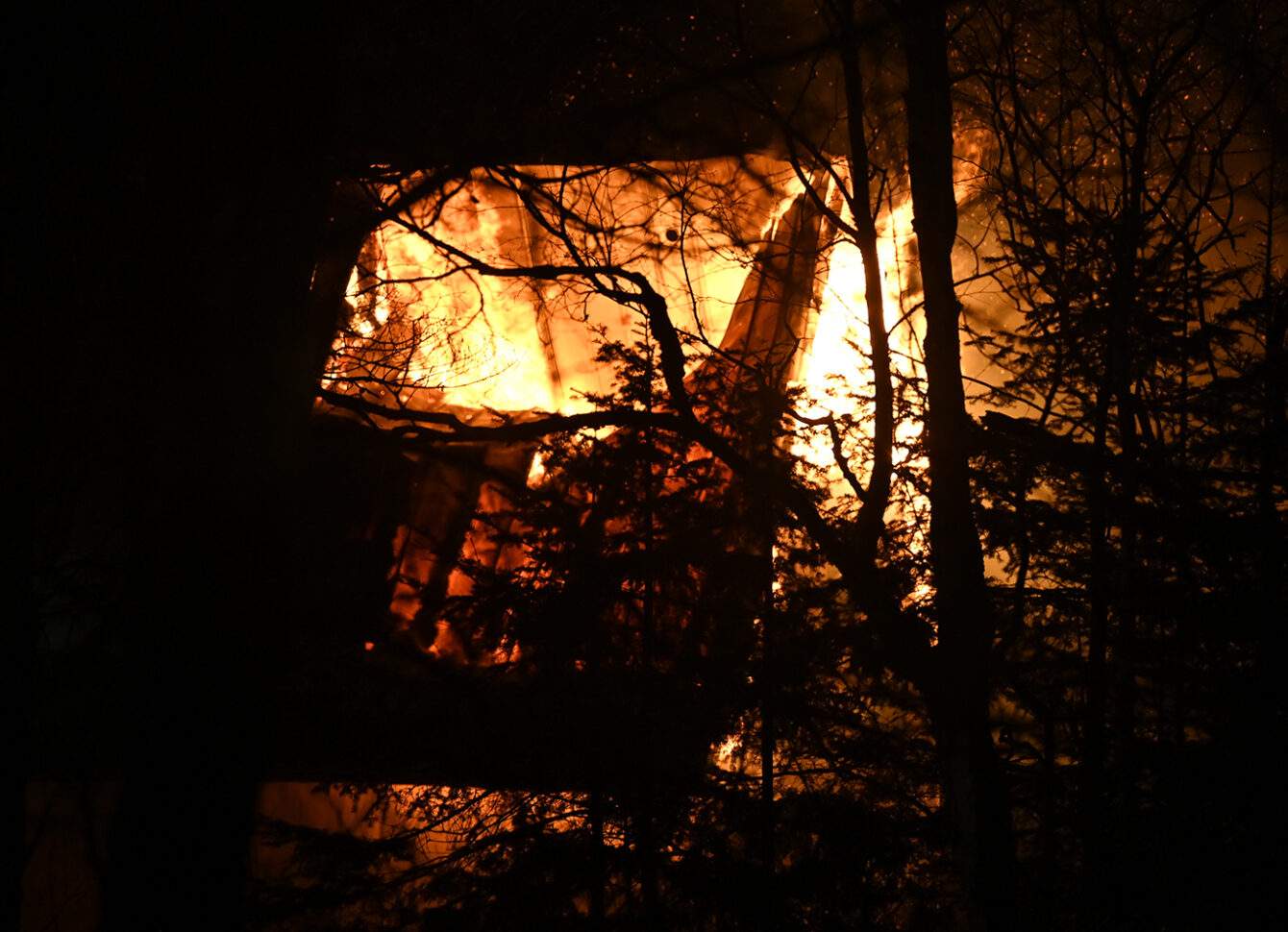 Les pompiers de Charlevoix combattent actuellement un incendie majeur sur le chemin des Hauts-Bois.