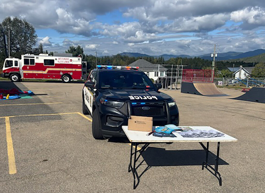 Le 14 septembre, le service incendie de Notre-Dame-des-Monts en collaboration avec les brigades de Clermont et de Saint-Aimé-des-Lacs a organisé une journée d’activités. Un agent du poste MRC de Charlevoix-Est a participé à l’activité avec une auto-patrouille. Il a distribué des cahiers et donné des conseils de sécurité aux jeunes et à leurs parents. Environ 80 personnes étaient présentes à cette activité.