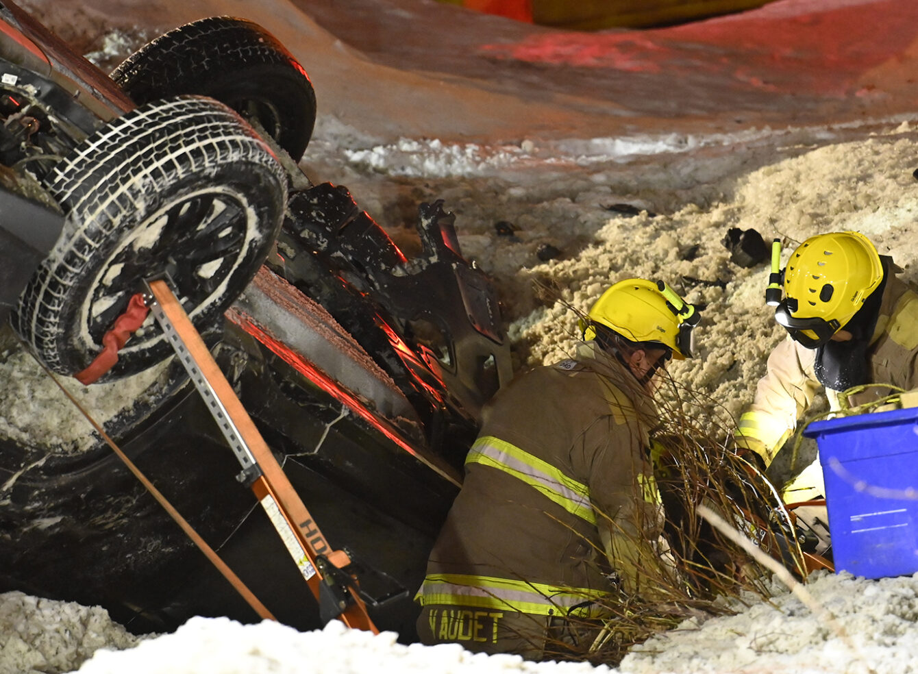 Le Service des incendies de Baie-Saint-Paul a dû utiliser les pinces de désincarcération pour extraire l’homme de l’habitacle.