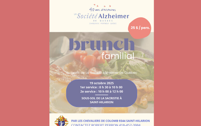 Brunch familial au profit de La Société Alzheimer de Québec à Saint-Hilarion ce dimanche.