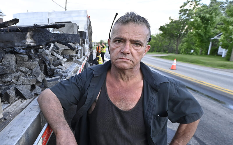 Semi-remorque en feu à BSP sur la route 138 devant le commerce Martin Tremblay Meubles. Le conducteur, Sergio Marini de Laval, a sauvé son camion.