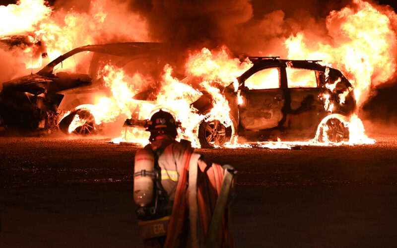Le service d'incendie de Baie-Saint-Paul a vite éteint plusieurs véhicules qui étaient la proie des flammes vers 1h50 cette nuit. Le feu était très virulent et quelques sonorités explosives ont été entendues pendant l'opération. L'intervention a freiné la possibilité de propagation à l'édifice adjacent. Selon le lieutenant du service d'incendie de la ville de Baie-Saint-Paul, Mathieu Gravel, un article de fumeur dans une auto serait à l'origine du brasier. L'homme qui prenait place dans la voiture n'a pas été blessé. Le feu s'est propagé aux véhicules voisins.