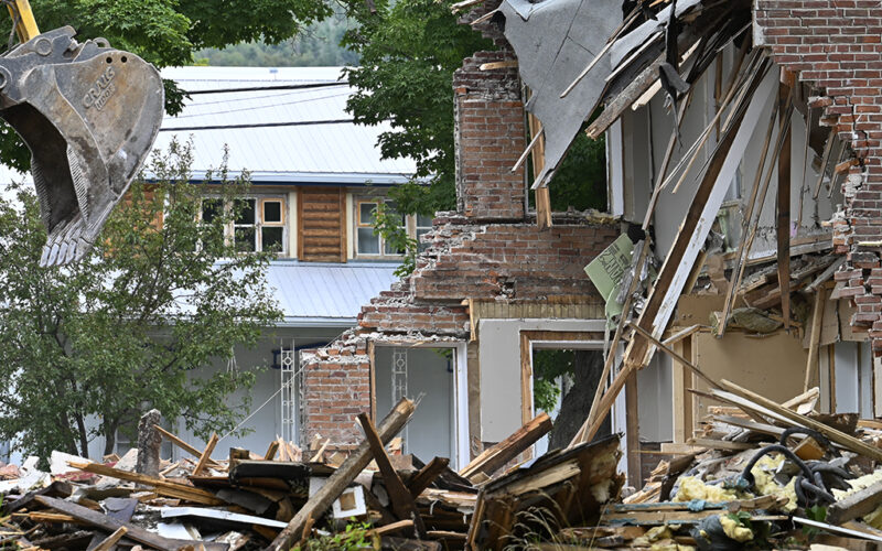 La démolition du gîte Le Clocheton sur la rue Saint-Joseph à Baie-Saint-Paul.