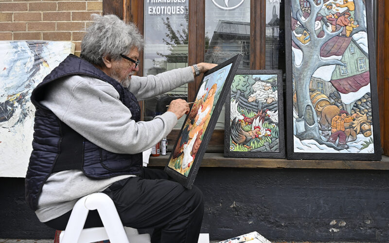 Guylaine Fournier crée un évènement extérieur avec ses artistes devant sa galerie d'art.