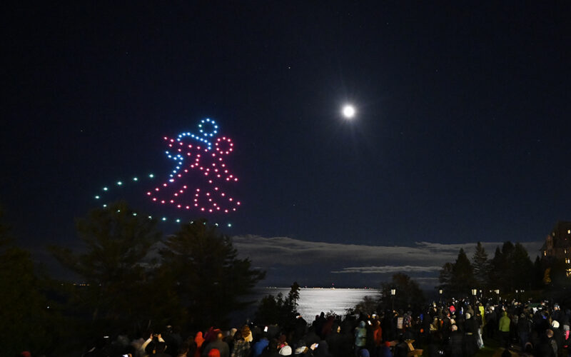 125 ans du Manoir Richelieu remémorés avec des images composées par des drones dans le ciel de Pointe-au-Pic.