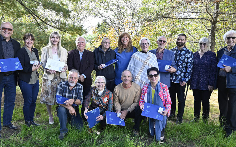 Plusieurs personnes reçoivent le Lys de Caroline lors d'une cérémonie au Camp Le Manoir des Éboulements.