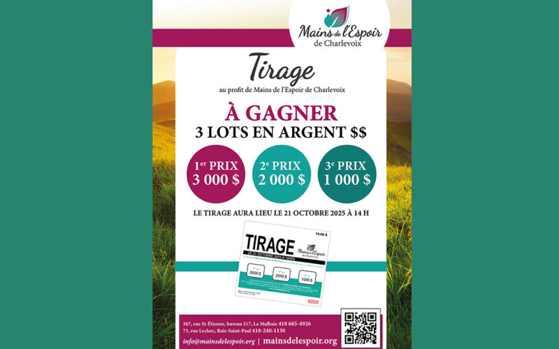 Mains de l’Espoir de Charlevoix, a procédé à 14h00 à son tirage annuel.