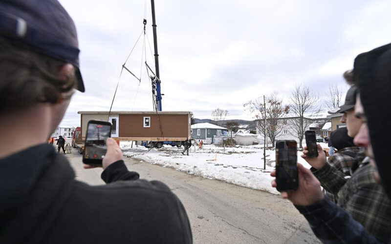 L'arrivée des minimaisons à Baie-Saint-Paul : le travail des élèves de l'ÉMOICQ concrétisé.