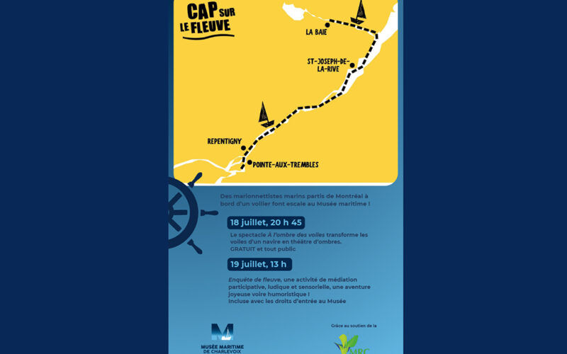 2 prestations- Le Musée Maritime de Charlevoix accueillera des marionnettistes marins partis de Montréal à bord d’un voilier dans le cadre de leur tournée Cap sur le fleuve.