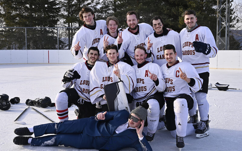 Les Loups-garous et Les Brulés champions du tournoi de hockey extérieur de Sport-Action à l'Isle-aux-Coudres.
