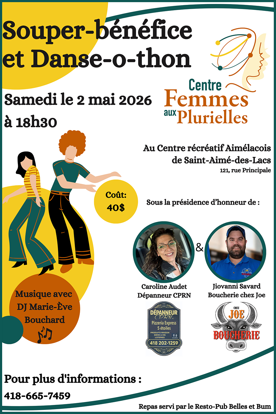 Dans un premier temps, la campagne consiste à solliciter un appui financier auprès des entreprises de la région, en contrepartie d’un plan de visibilité avantageux pour elles. Ensuite, tous les donateurs et la population en général sont invités à prendre part à un souper-bénéfice suivi d’un danse-o-thon qui aura lieu samedi le 2 mai 2026, à 18h30, au Centre récréatif Aimélacois de Saint-Aimé-des-Lacs. Le repas en trois services sera préparé par le Resto-Pub Belles et Bum, et l’animation musicale sera confiée à DJ Marie-Ève Bouchard.