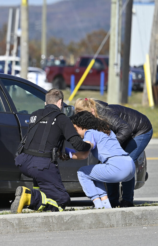 L’impact a nécessité l’intervention rapide des services d’urgence. La conductrice de la voiture a été évaluée par les ambulanciers.