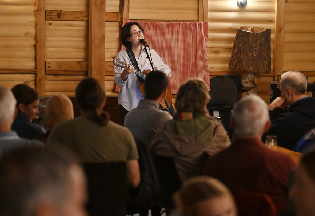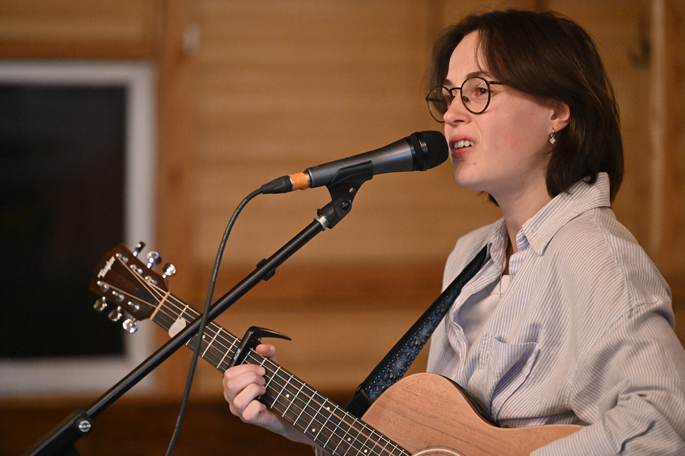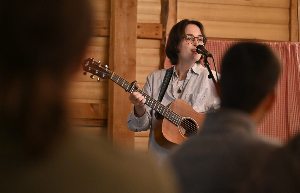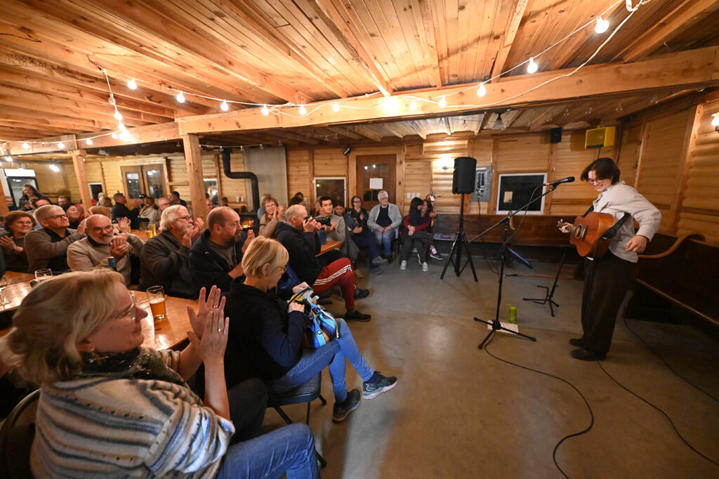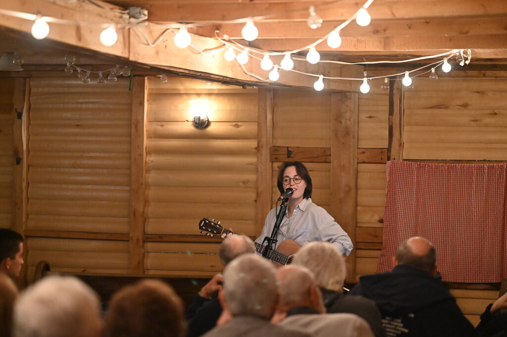 Originaire de Lévis et forte d’une expérience notable à La Voix (équipe Roxane Bruneau, hiver 2024), la jeune artiste a attaqué l’ancienne petite cabane à sucre seule, munie de sa guitare acoustique. Ses deux pieds bien ancrés au sol, elle a démontré une assurance et une aisance parfaites, fidèle à ses influences pop/folk.
