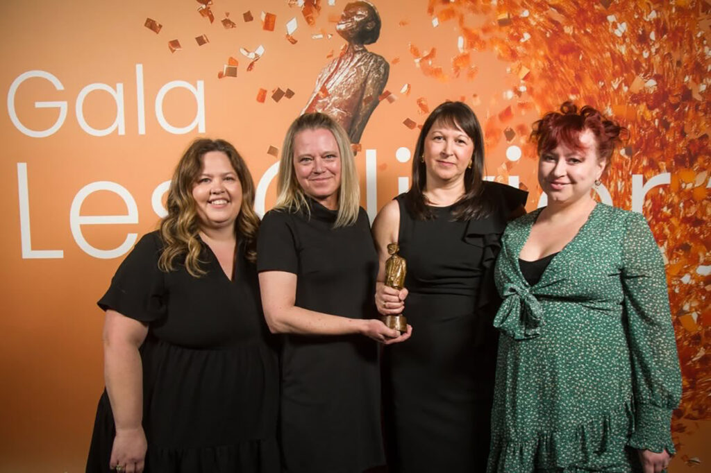 « Fière d’avoir remporté cette belle reconnaissance, avec la plus belle gang de collègues et d’artistes au monde ! »