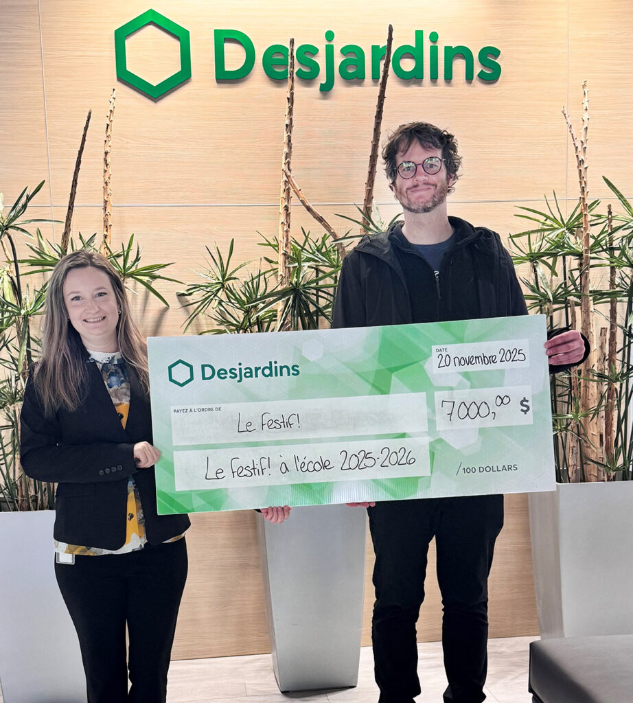 « Desjardins, c’est un acteur de proximité qui croit au pouvoir des communautés, un peu comme nous. Ce partenariat vient renforcer notre mission : celle de transmettre aux jeunes l’importance de s’impliquer, de soutenir la culture d’ici et de faire rayonner la créativité québécoise. Leur appui donne un élan collectif au Festif! à l’École et contribue à rassembler toute la région de Charlevoix autour d’un projet porteur », ajoute Clément Turgeon Thériault, directeur général et artistique.