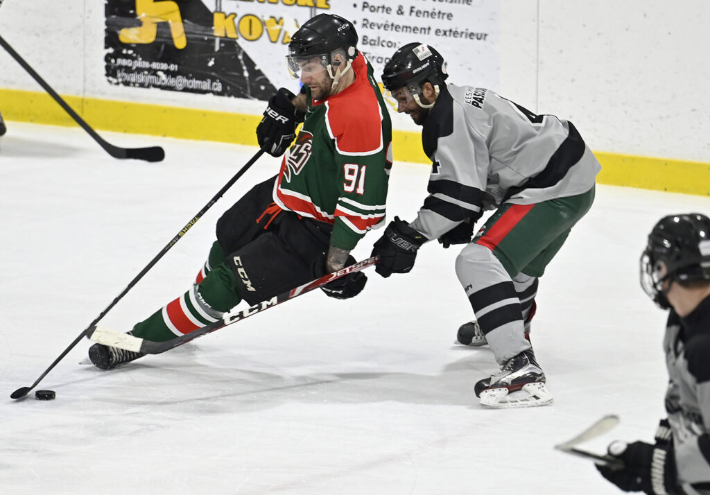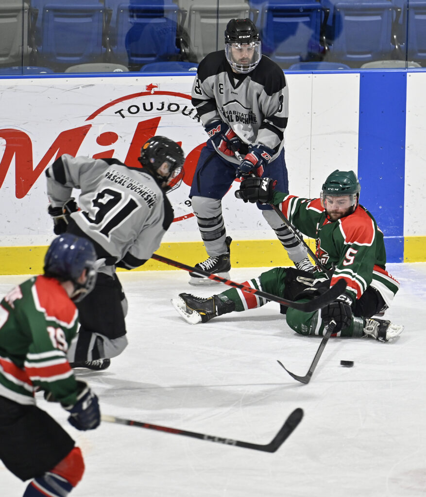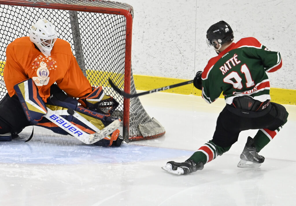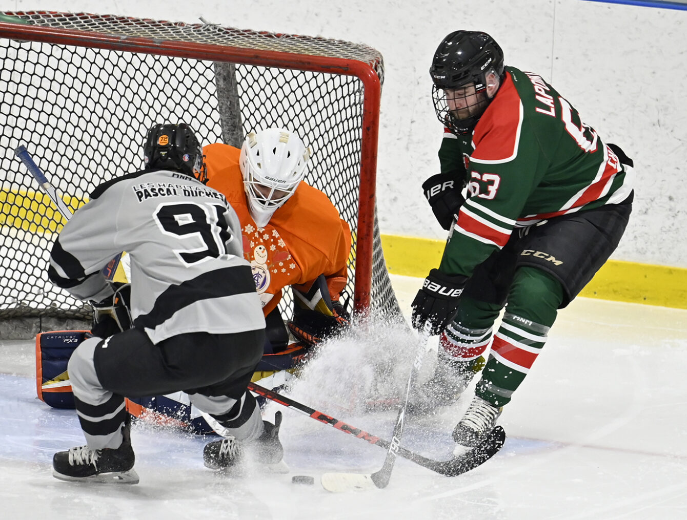 Le duel s’est ensuite transformé en une bataille défensive. Il aura fallu attendre la deuxième période pour voir les Habitations Pascal Duchesne répliquer. À 7:21, Francis Dufour (numéro 91) a réussi à déjouer la vigilance du gardien adverse pour niveler la marque, redonnant espoir à ses coéquipiers et à leurs partisans.