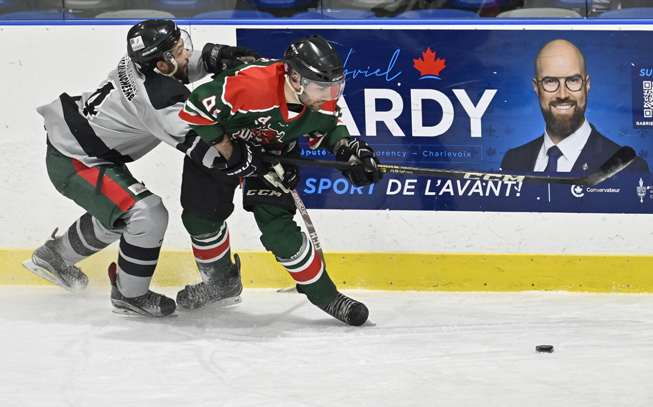 Dès le coup d’envoi à 16h ce dimanche, les spectateurs ont eu droit à de l’action soutenue. Les Devils de Charlevoix n’ont pas tardé à imposer leur rythme, ouvrant la marque seulement 20 secondes après le début de la première période. Ce but, œuvre de Charles Fillion, a été savamment orchestré grâce aux aides d’Anthony Bouchard et de Maxime Lapointe.