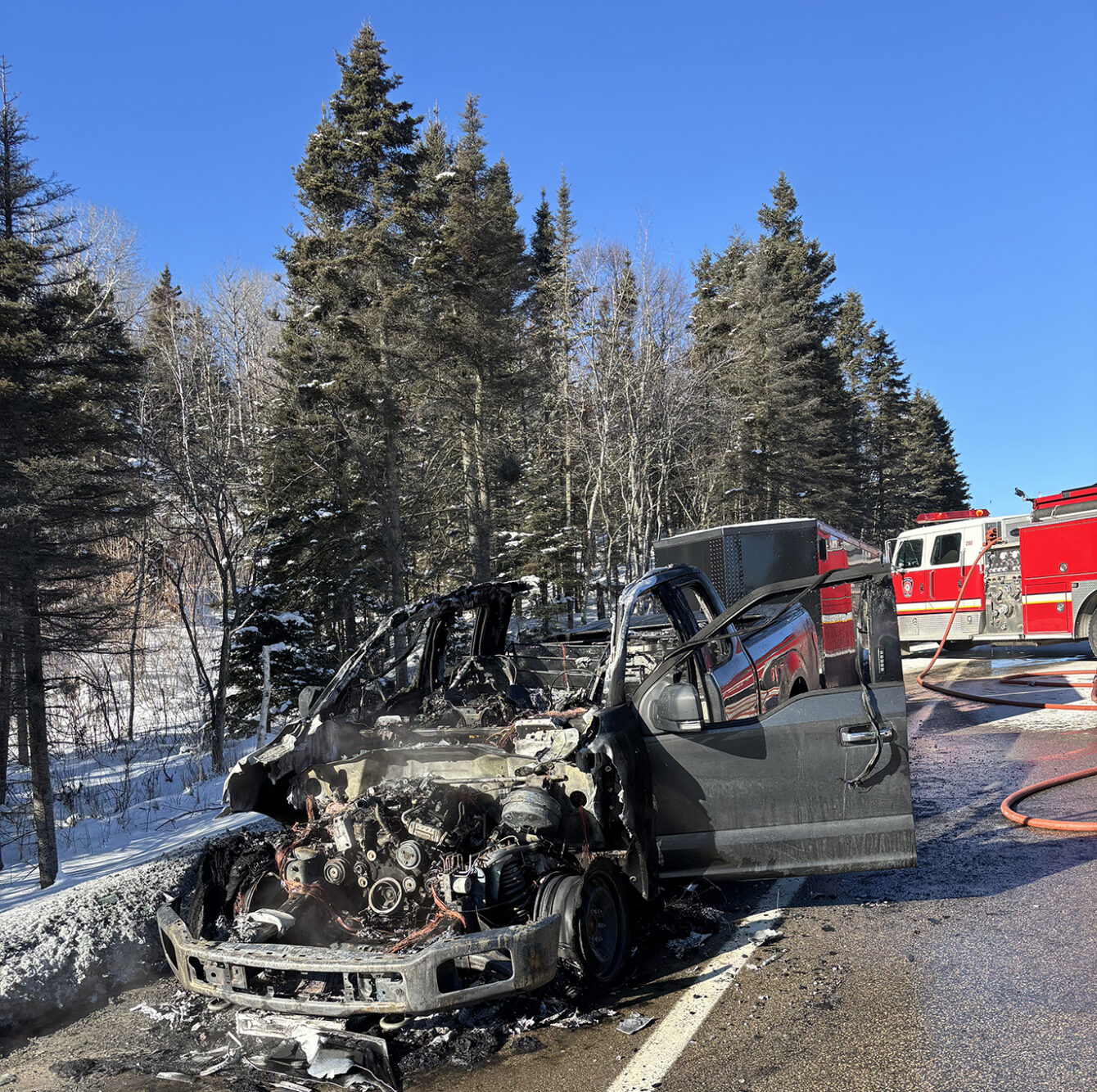 Selon les informations transmises par le chef des incendies de Saint-Siméon, Yoan Savard, le conducteur aurait immobilisé son véhicule en bordure de route après avoir détecté un problème mécanique. C’est alors qu’il s’apprêtait à contacter une dépanneuse que le feu s’est déclaré, détruisant complètement la camionnette.