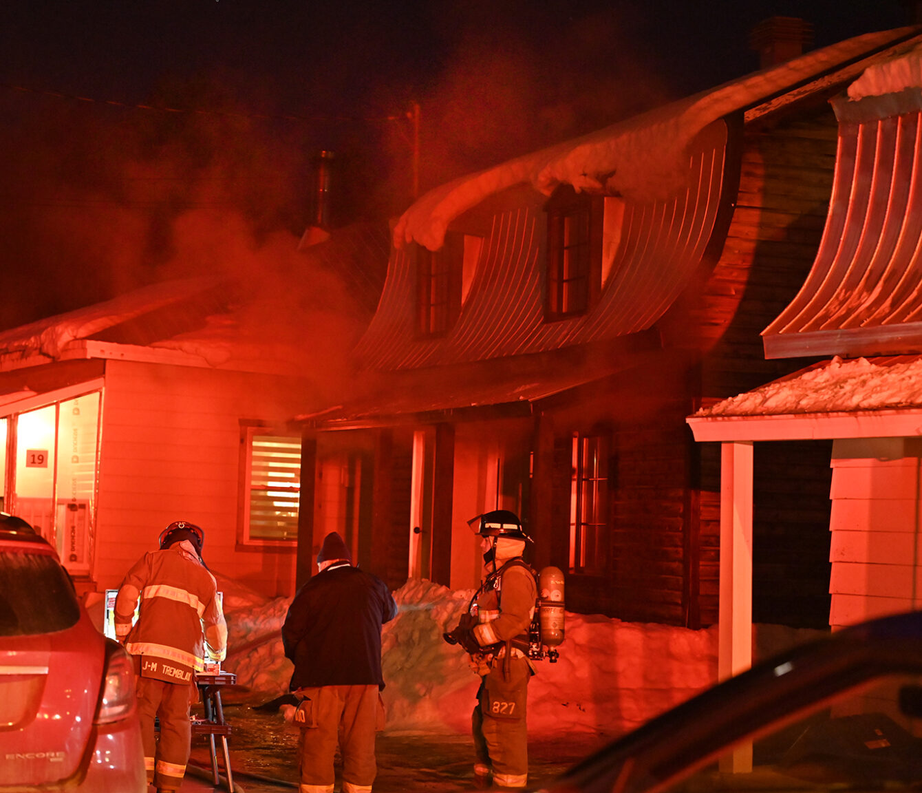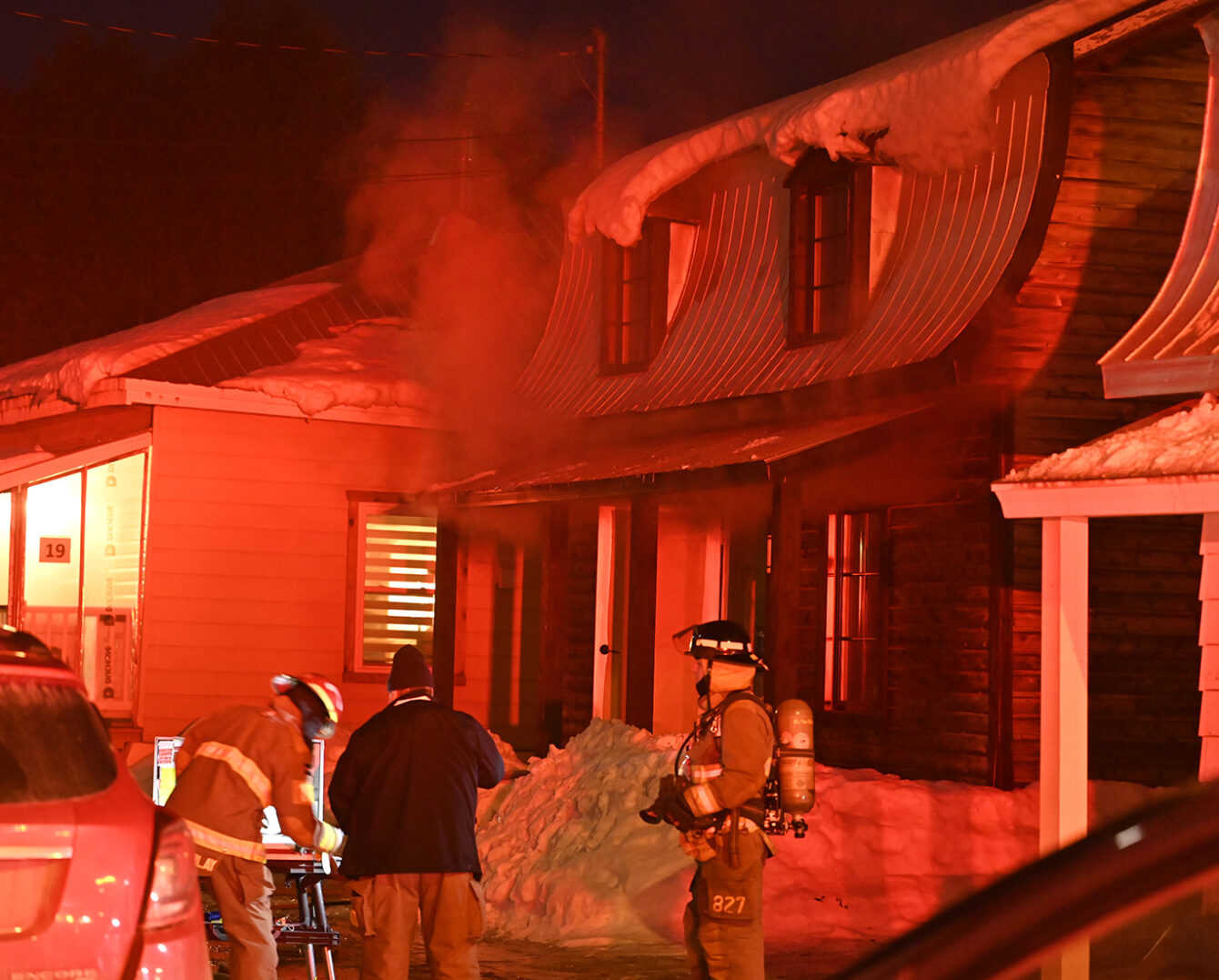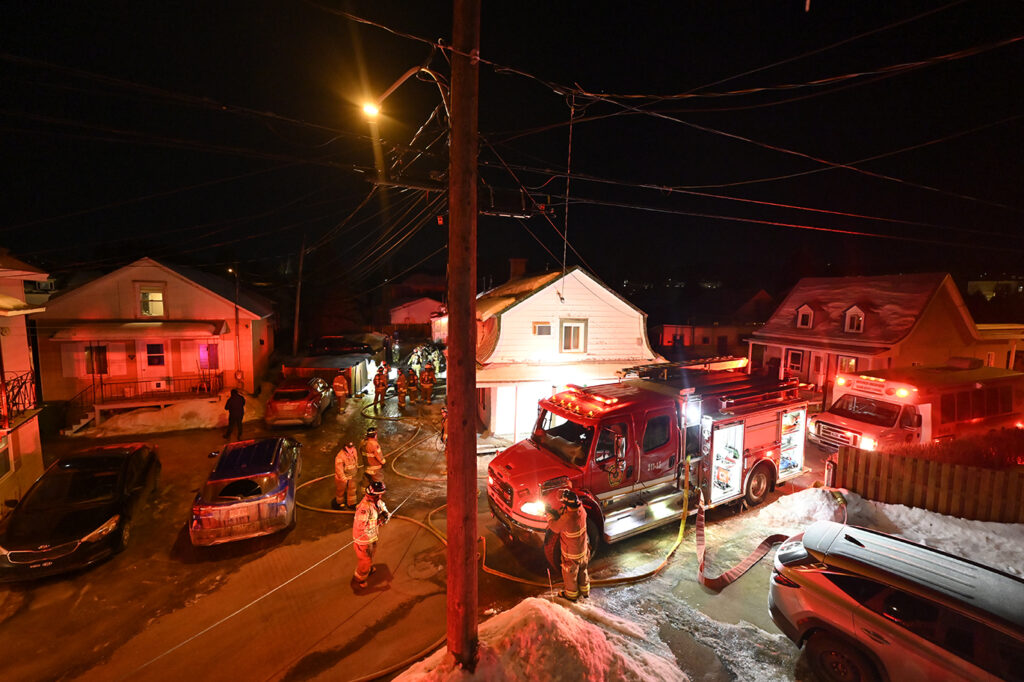 C’est au premier étage d’une maison privée que l’incident a débuté. De la fumée s’échappait par la porte de l’entrée principale, ce qui a nécessité l’intervention immédiate des services d’urgence.