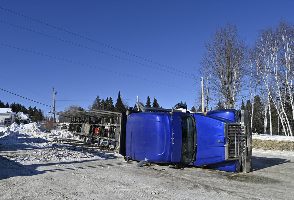 Incident mineur à l'intersection du chemin de l'Horizon-Boisé et du rang Saint-Placide Nord- Une semi-remorque chavire sur le côté.