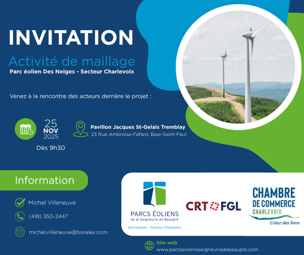 Venez à la rencontre des acteurs derrière le projet éolien Des Neiges – Secteur Charlevoix.