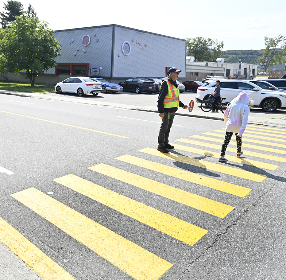 Un brigadier près d'une école à Baie-Saint-Paul dans Charlevoix. Photo d’archives: Jean-François Desgagnés/MPC