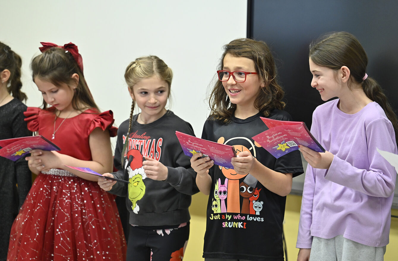 Quelques minutes plus tard, ils ont présenté et chanté « Mystères Fantastiques », une œuvre qui « parle de mystères de la vie », devant toute l’école réunie dans la grande salle.