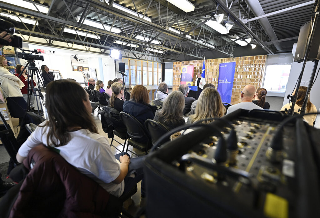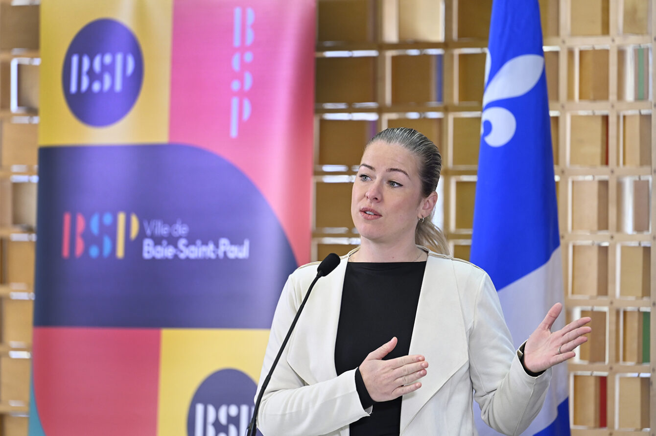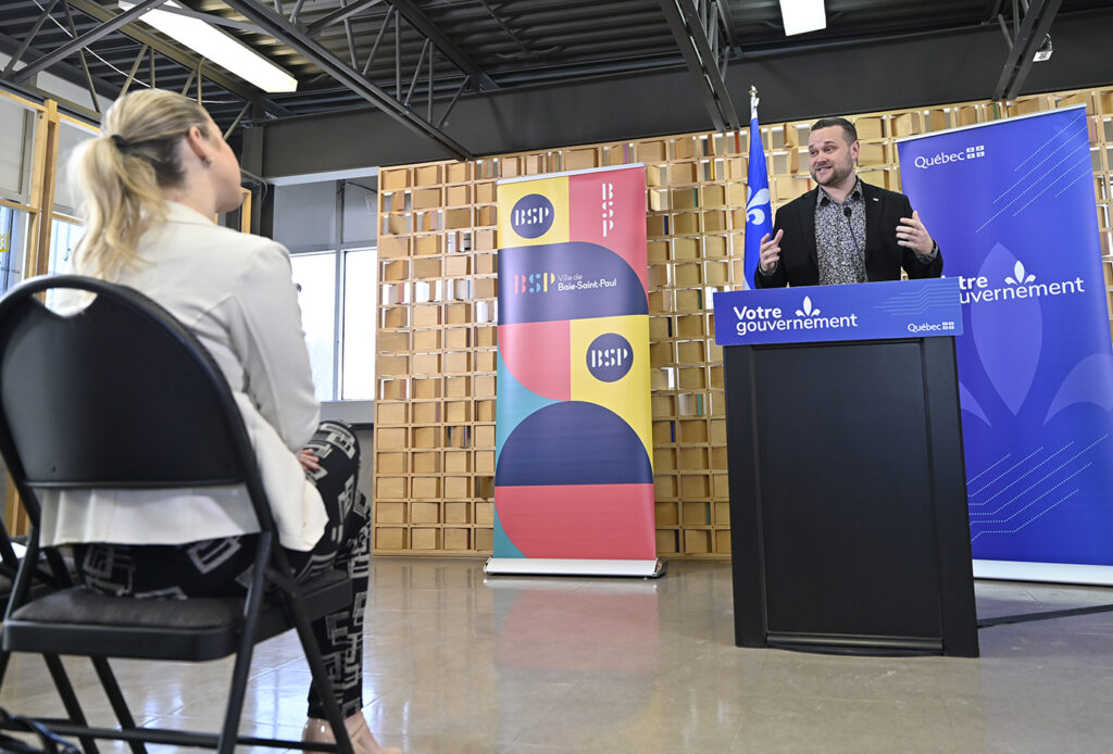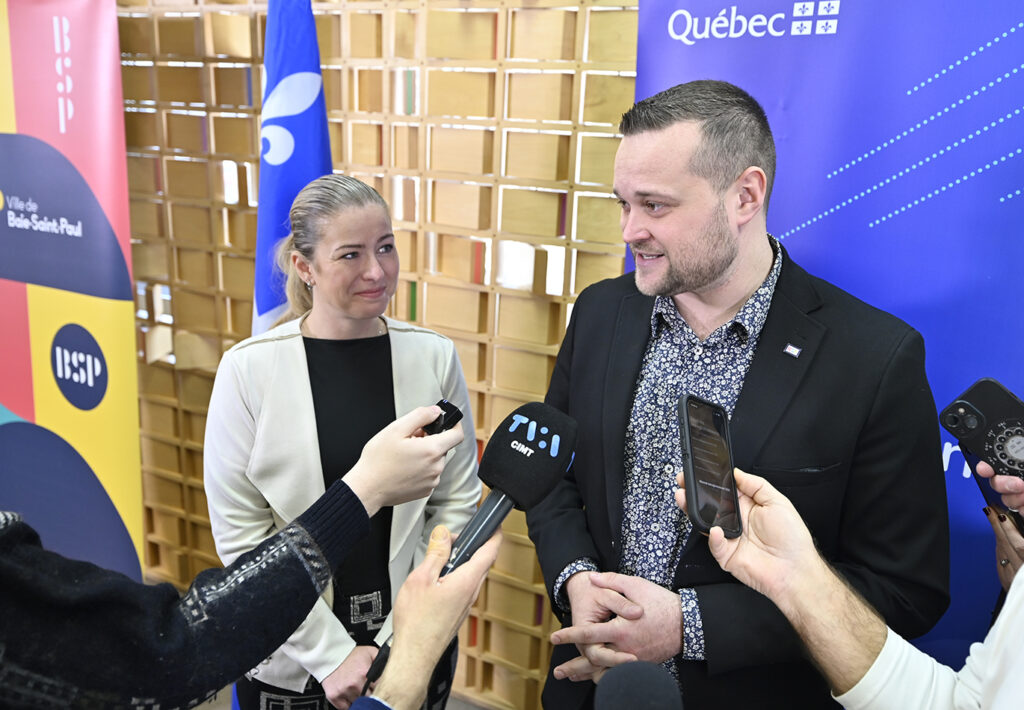L’annonce a eu lieu au Carrefour culturel Paul-Médéric. En l’absence du ministre Mathieu Lacombe, c’est Mme Kariane Bourassa, députée de Charlevoix–Côte-de-Beaupré, qui a officialisé l’investissement aux côtés du maire de la ville, M. Michaël Pilote.