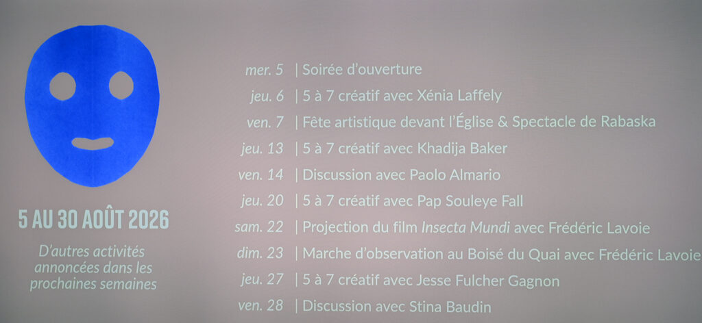 Une programmation d’activités culturelles viendra ponctuer l’événement, favorisant les rencontres et les échanges autour des démarches présentées. Le programme complet sera dévoilé quelques semaines avant le début du Symposium.