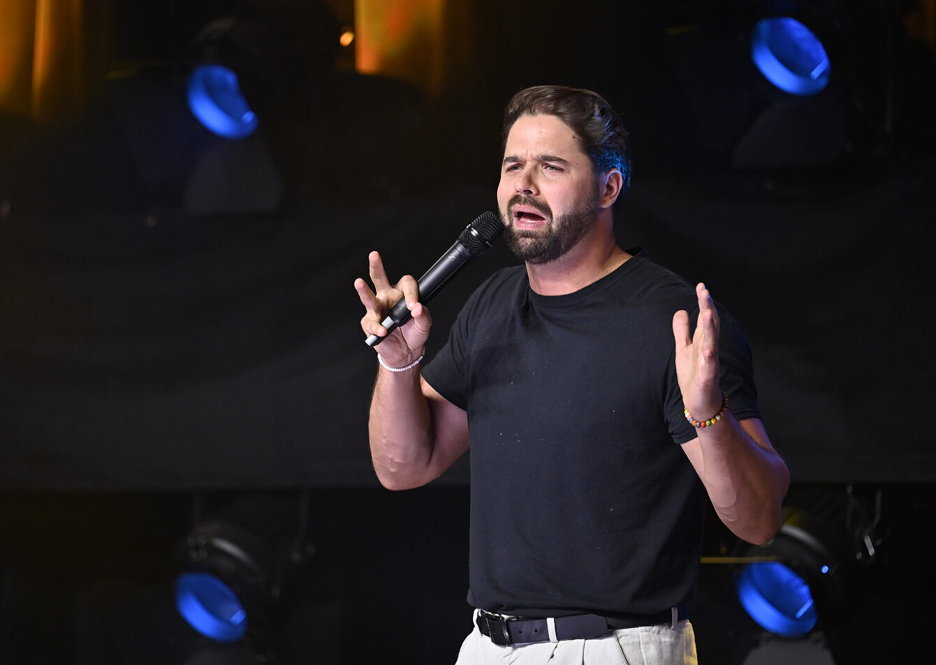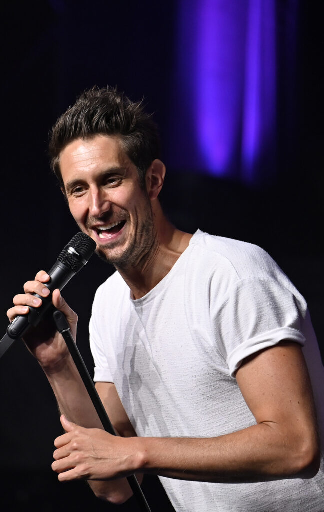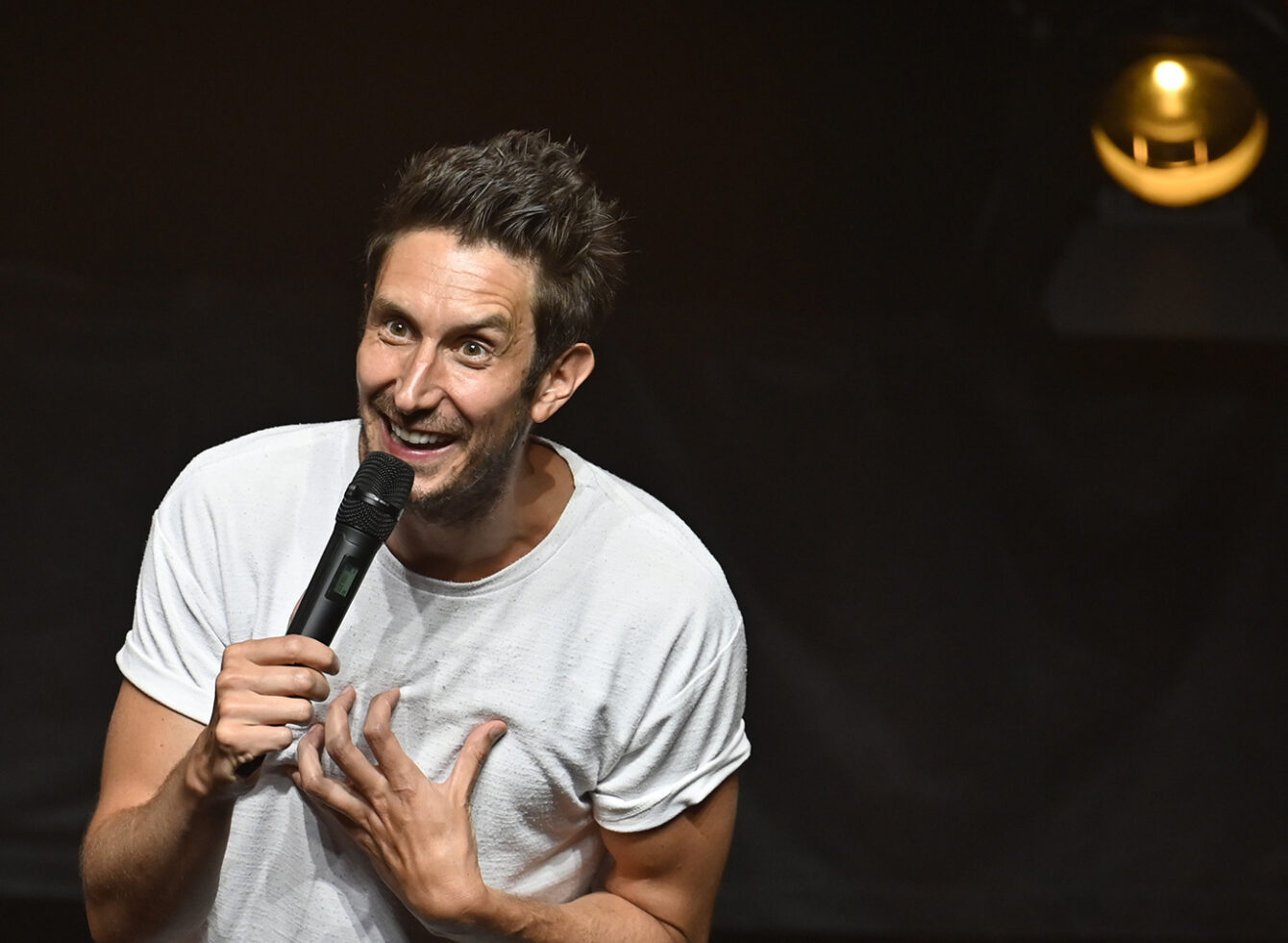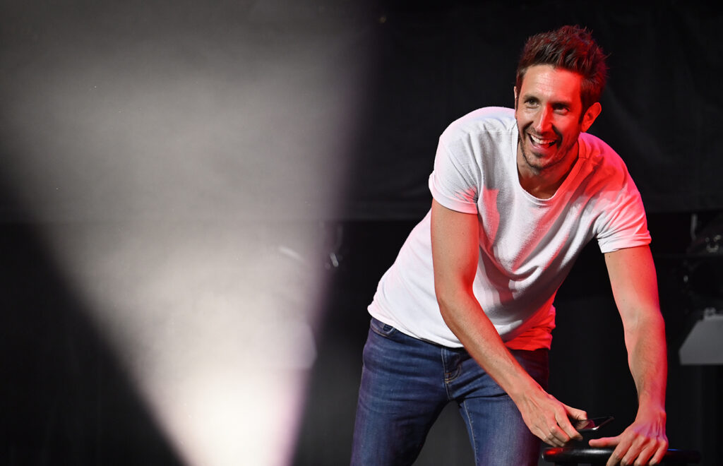 Le public a eu droit à un spectacle déjanté dans un hangar bondé. L’humoriste d’origine française, en très grande forme, a conquis la foule dès le départ. Il a d’ailleurs interagi avec plusieurs spectateurs, dont Tony, Sylvie, Alain et Johanne.