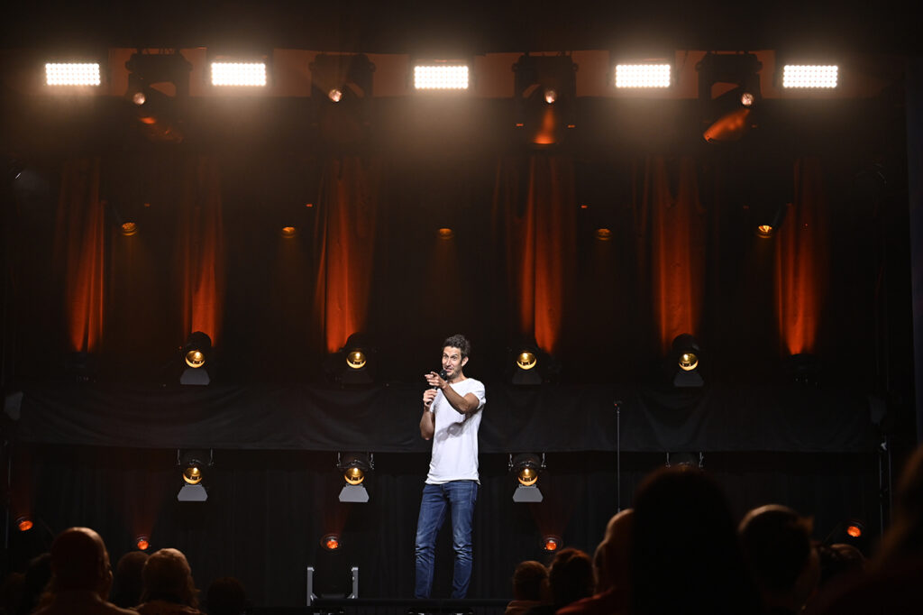 Avant que Jérémy Demay ne monte sur les planches, c’est Charles-Olivier St-Cyr qui a assuré la première partie, réchauffant la salle pour l’humoriste principal.