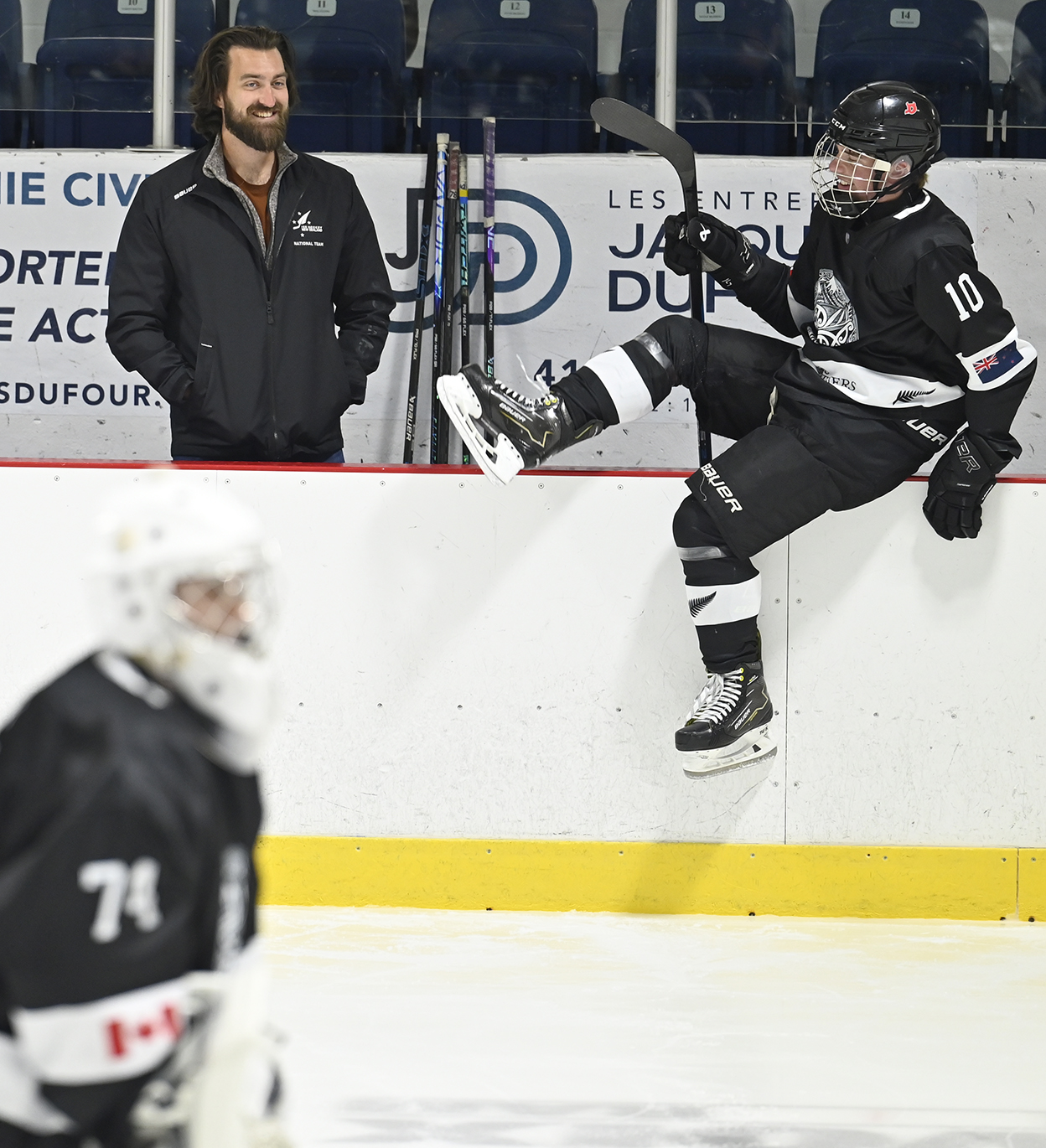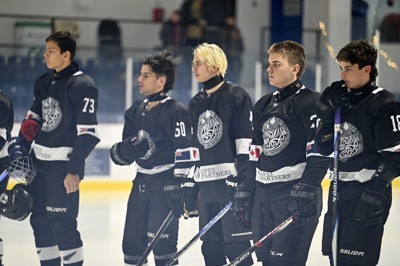 Match de hockey entre les Rorquals M18A de Charlevoix contre une équipe de la Nouvelle-Zélande à l'aréna de Baie-Saint-Paul. Photo: Jean-François Desgagnés/MPC
