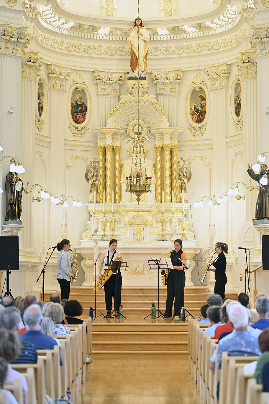 Ensemble Altaïr en prestation à la chapelle de Maison Mère, dimanche, le 3 août 2025. Photo: Jean-François Desgagnés/MPC