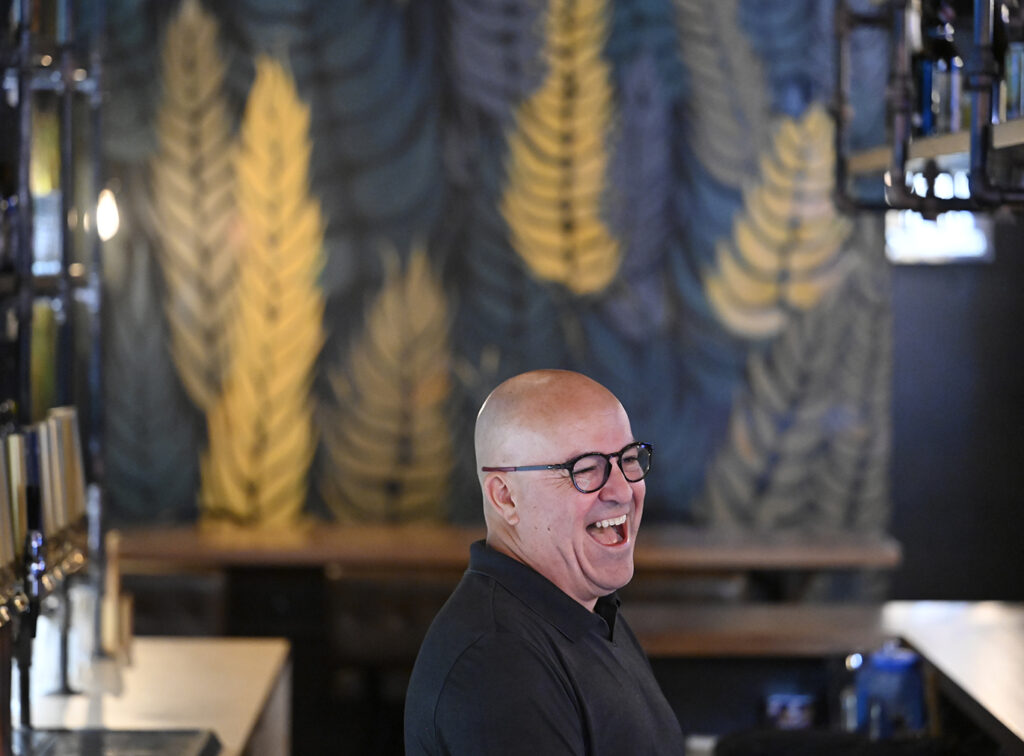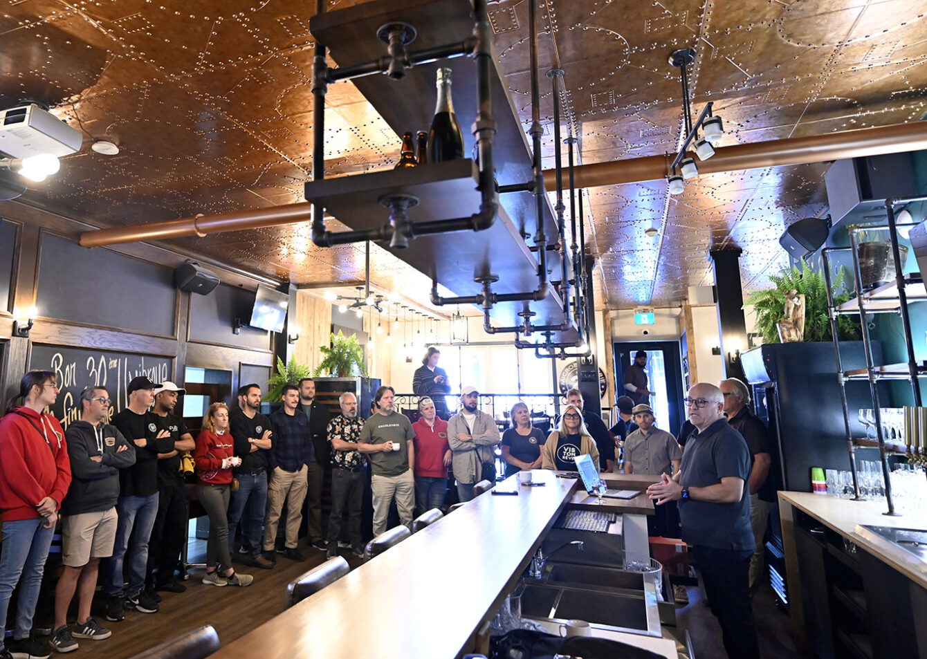 Annonce en direct du Saint-Pub ce matin. Le co-propriétaire de MicroBrasserie Charlevoix Frédérick Tremblay. Photo: Jean-François Desgagnés/MPC