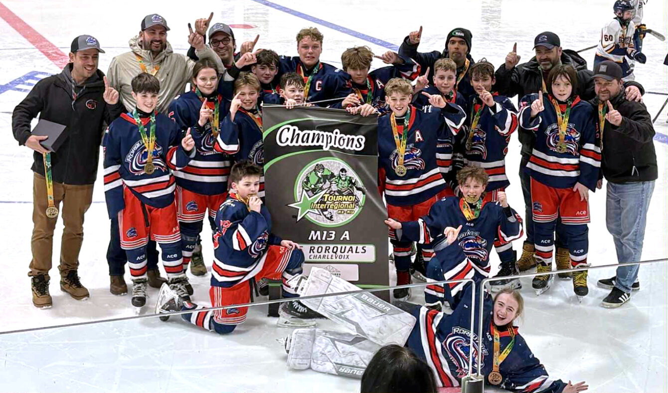Les Rorquals M13 A de Charlevoix remportent un dernier tournoi ce week-end. La formation charlevoisienne a soulevé le trophée de championnat du Tournoi interrégional M11-M13 d'Alma, s'imposant par la marque de 4 à 2 lors de la grande finale.