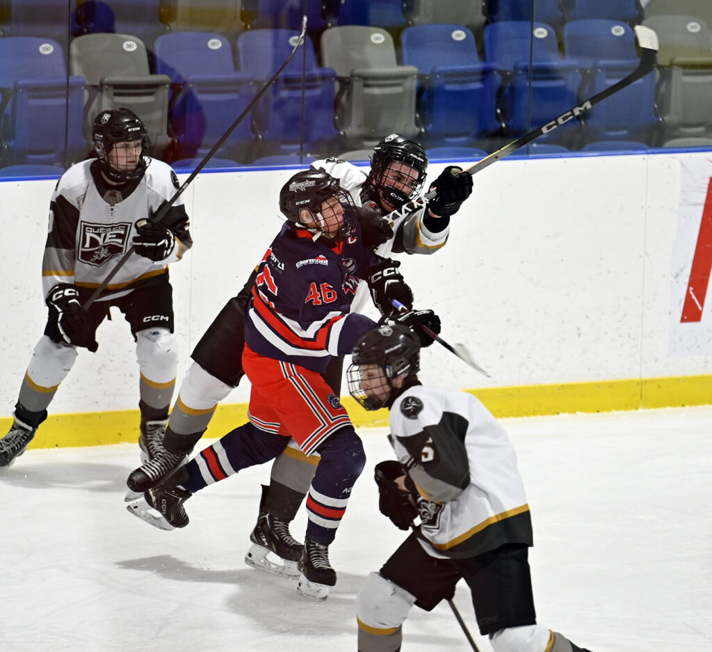 Les Rorquals de Charlevoix ont signé une victoire de 4-3 contre les Seigneurs de HQNE dans un duel physique disputé à l’aréna de Clermont. Le dénouement s’est joué dans la dernière minute de la rencontre.