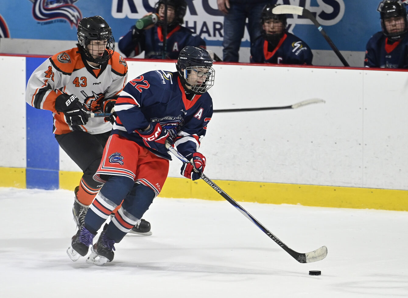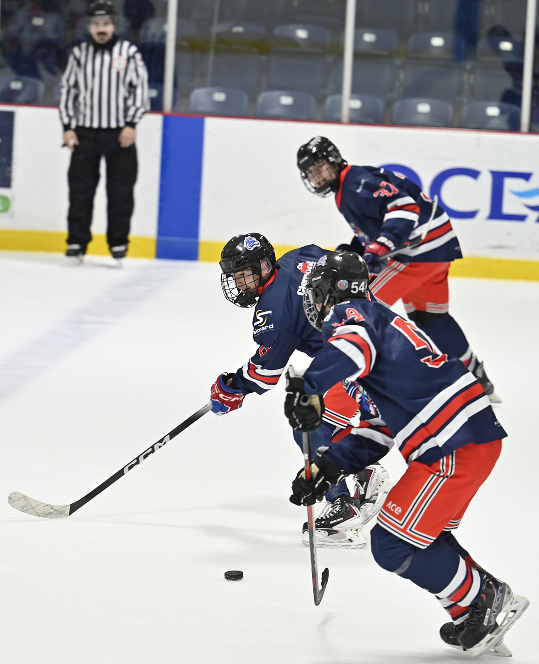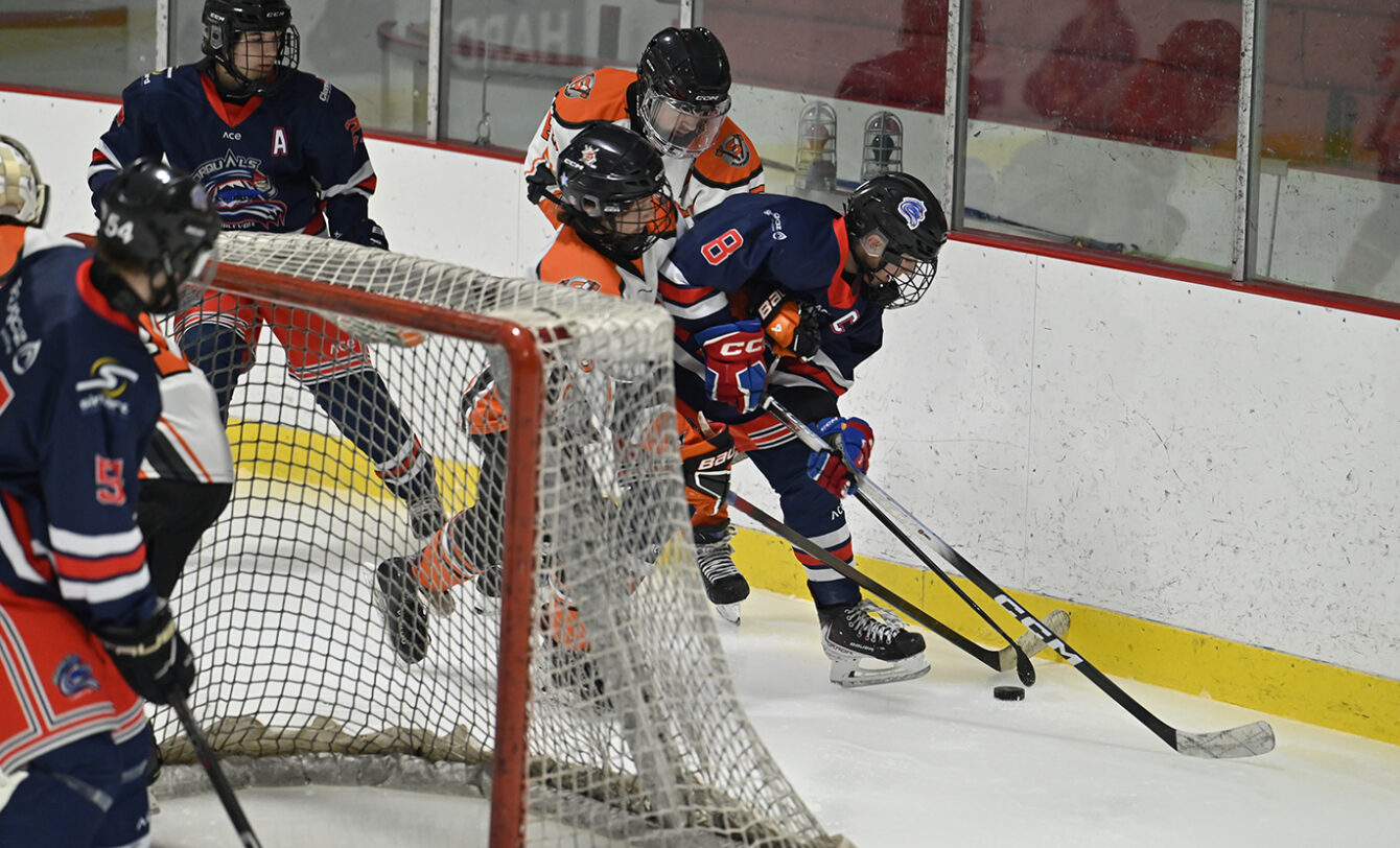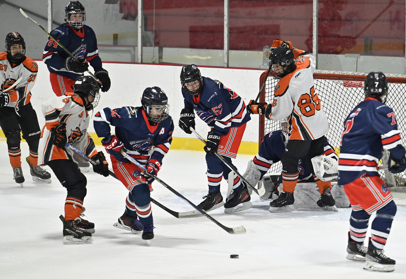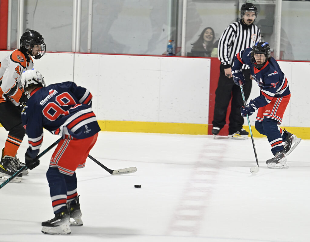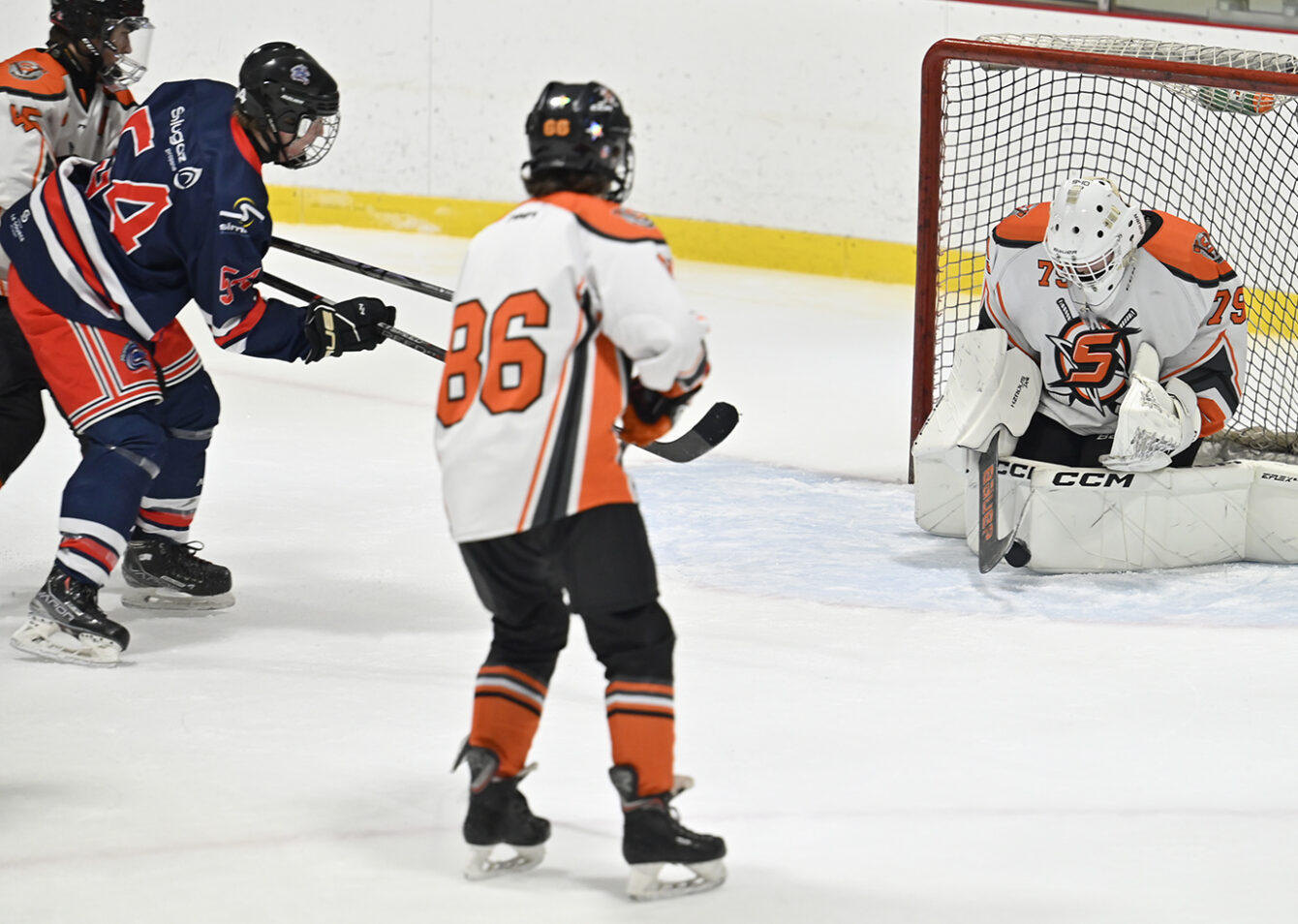 Les Rorquals M18 B de Charlevoix ont subi un revers de 4 à 0 ce matin face aux Dynamos, à l'occasion de leur deuxième match du Tournoi M18 de Baie-Saint-Paul, présenté à 11h00. Photo: Jean-François Desgagnés/MPC