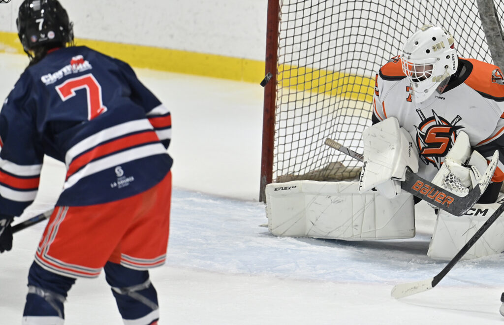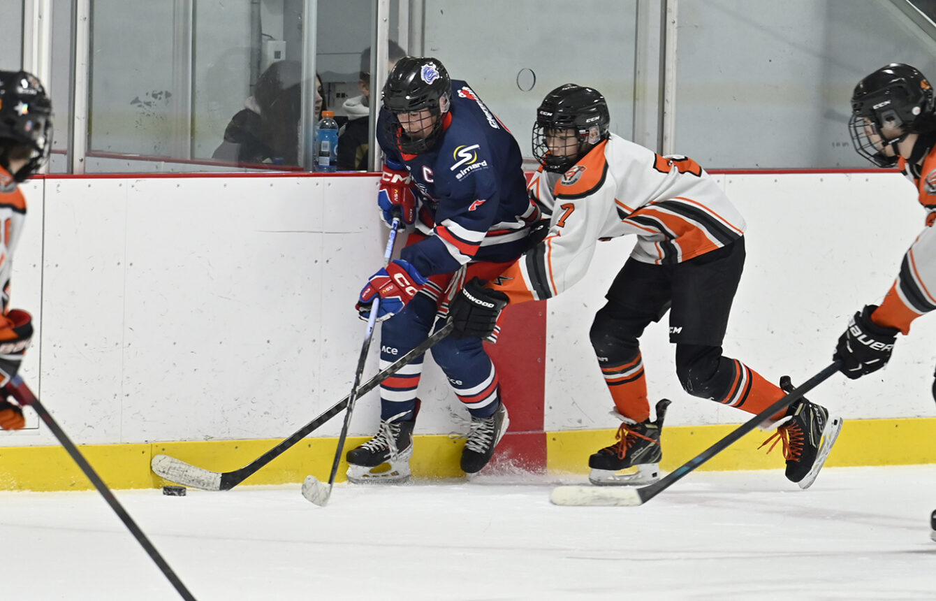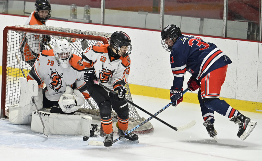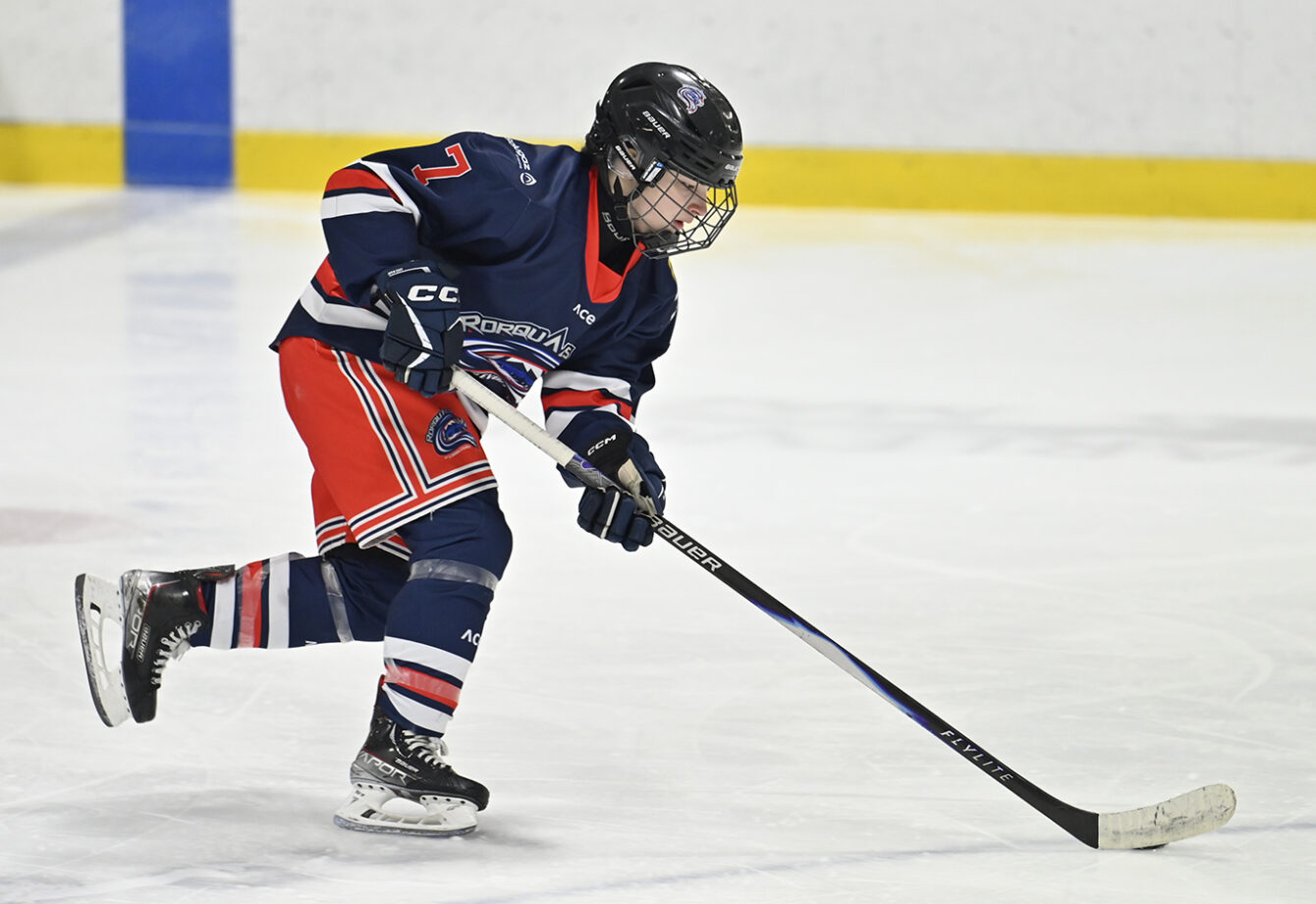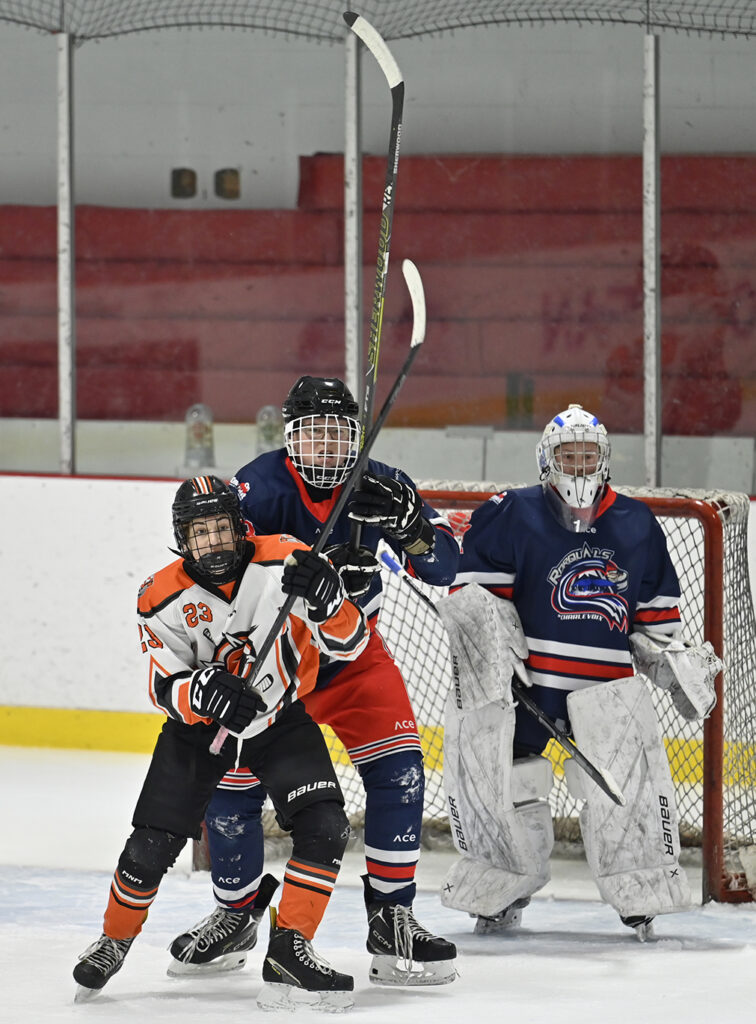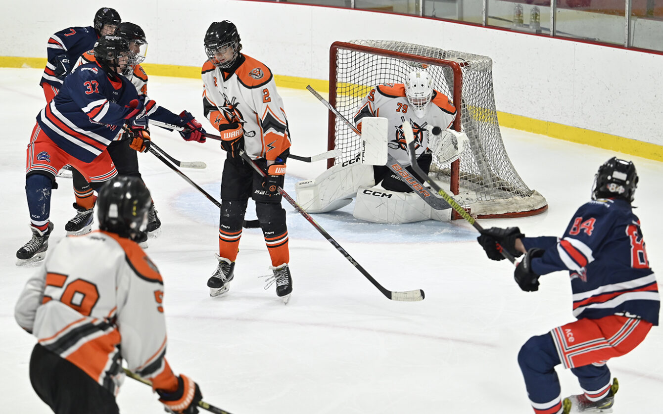 Les Rorquals M18 B de Charlevoix ont subi un revers de 4 à 0 ce matin face aux Dynamos, à l'occasion de leur deuxième match du Tournoi M18 de Baie-Saint-Paul, présenté à 11h00. Photo: Jean-François Desgagnés/MPC