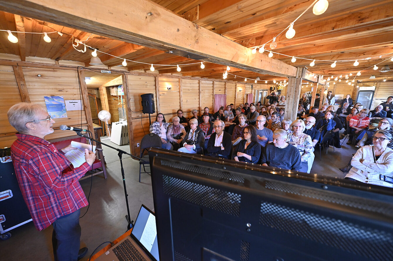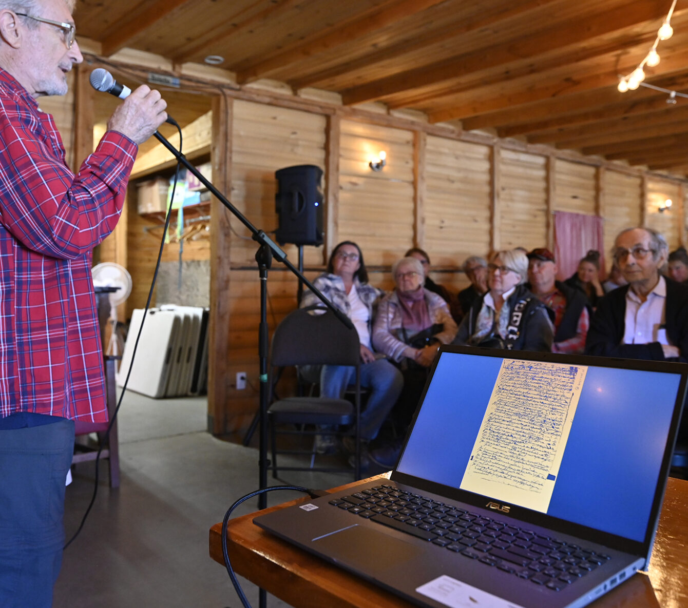 M. Lavoie, lui-même résident de la place, connaît bien l’histoire de son « pays ». En plein début d’après-midi, il a récité son savoir sur Petite-Rivière-Saint-François, documents à l’appui, devant une assistance attentive.