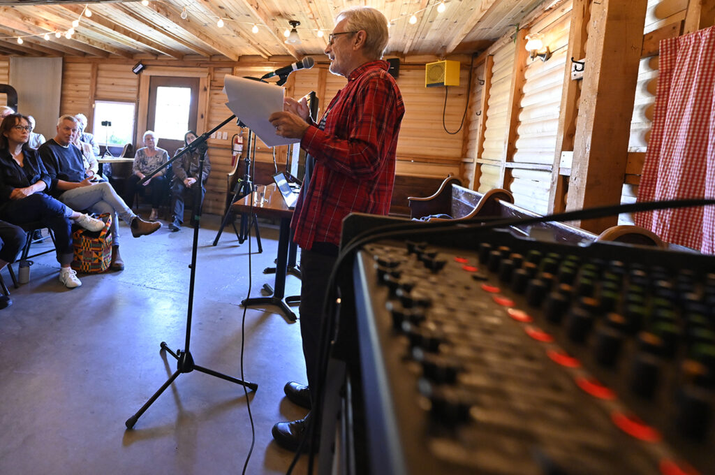 Gilles Lavoie raconte l'histoire de Petite-Rivière-Saint-François. Photo: Jean-François Desgagnés/MPC