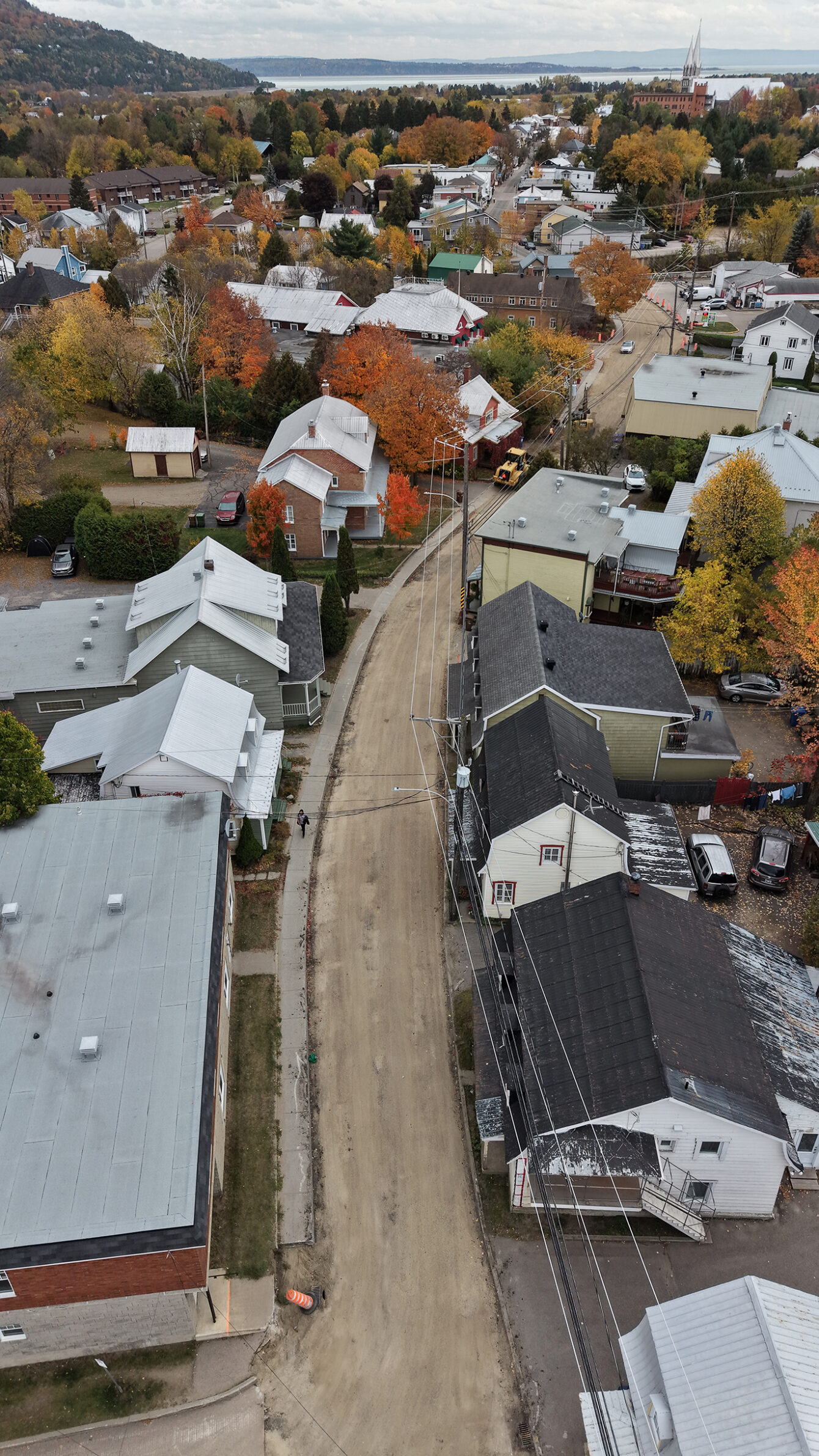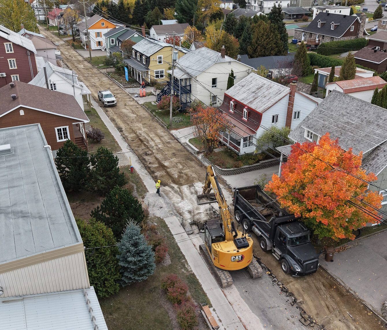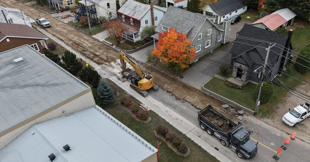 Travaux en cours dans le secteur de la rue Saint-Jean-Baptiste à Baie-Saint-Paul. Photo: Jean-François Desgagnés/MPC