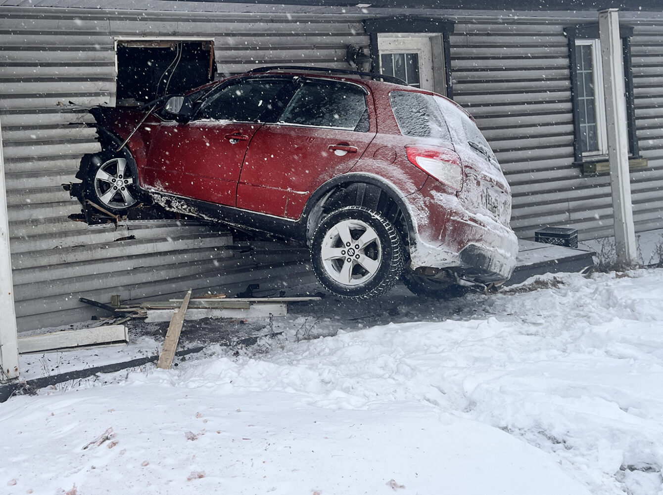Perte de contrôle dans une courbe : un véhicule s'encastre dans une maison à Baie-Saint-Paul.