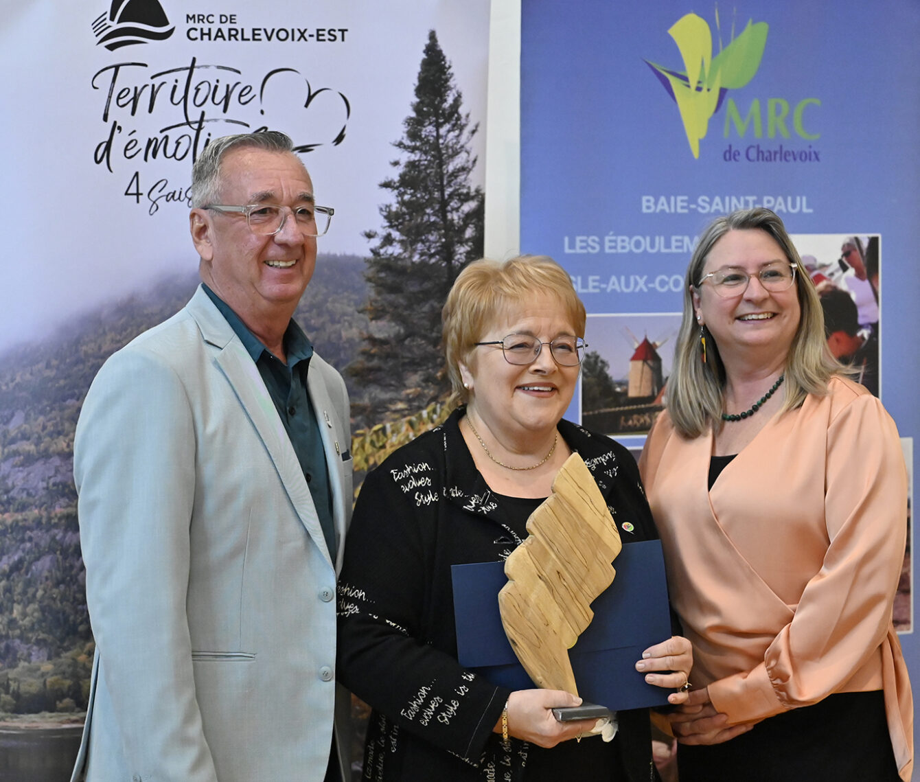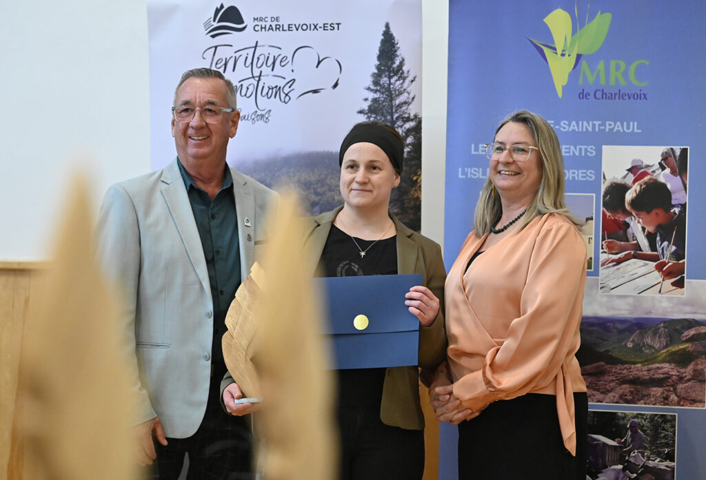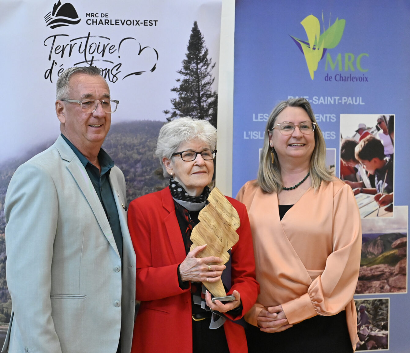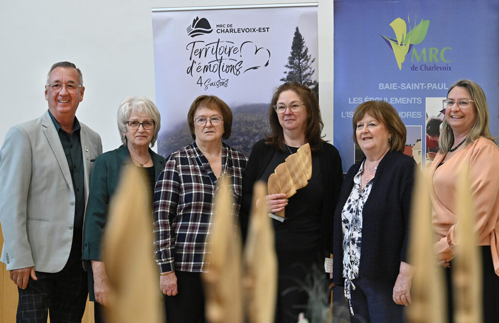 L’évènement s’est conclu par la remise des prix attribués à des d’individus reconnus pour une maîtrise technique ou des connaissances spécifiques issues de la génération précédente et qui se positionnent comme des maillons essentiels à la transmission de coutumes ou de savoirs traditionnels. Ainsi, les MRC ont reconnu deux porteuses de tradition, soit Mme Anne-Marie Bérubé Savard, de Baie-Sainte-Catherine et Mme Marie Plourde des Éboulements.