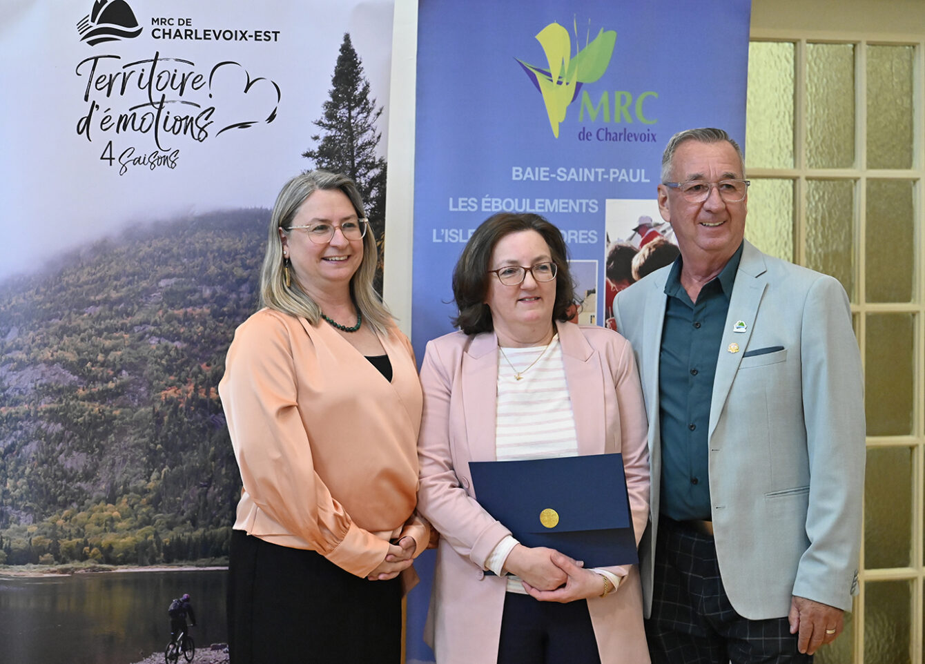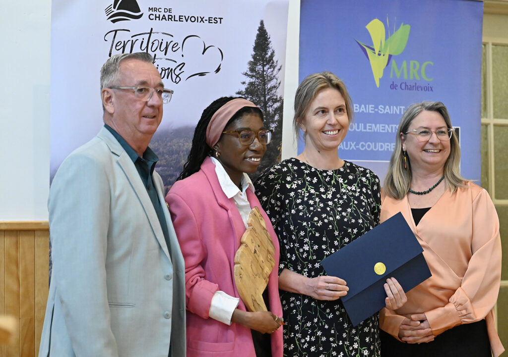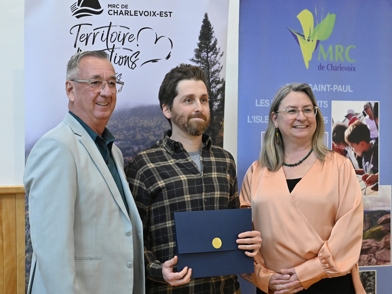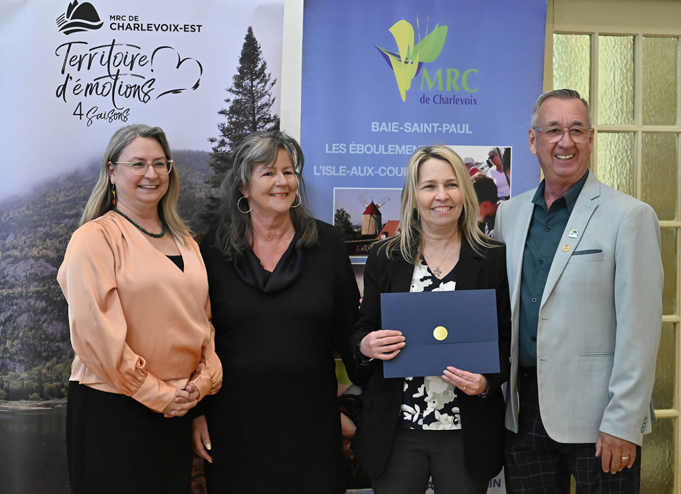 L’évènement s’est conclu par la remise des prix attribués à des d’individus reconnus pour une maîtrise technique ou des connaissances spécifiques issues de la génération précédente et qui se positionnent comme des maillons essentiels à la transmission de coutumes ou de savoirs traditionnels. Ainsi, les MRC ont reconnu deux porteuses de tradition, soit Mme Anne-Marie Bérubé Savard, de Baie-Sainte-Catherine et Mme Marie Plourde des Éboulements.