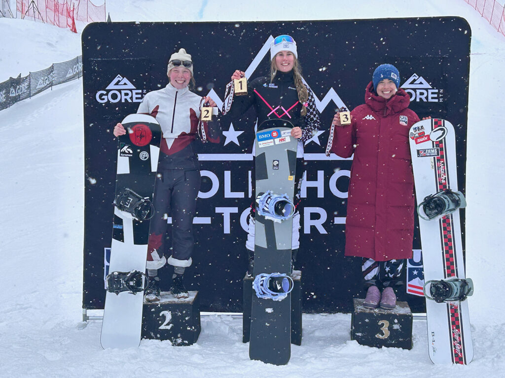 Rose Savard-Ferguson de Baie-Saint-Paul a remporté sa première victoire sur le Circuit Nord-Américain en snowboard cross lors de la compétition de Gore Mountain dans l'État de New York. Photo : courtoisie, crédit, Shawn Good.