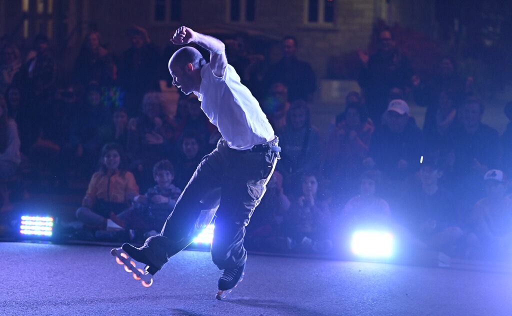 Pour couronner cette magnifique journée, les festivaliers ont eu droit à un spectacle de la compagnie Le Patin Libre devant l’église de Baie-Saint-Paul. Cette compagnie montréalaise de patinage contemporain a offert une performance audacieuse, croisant la virtuosité athlétique du patinage avec la créativité de la danse contemporaine et l’énergie des danses urbaines. Un moment spectaculaire et inattendu qui a assurément marqué les esprits !